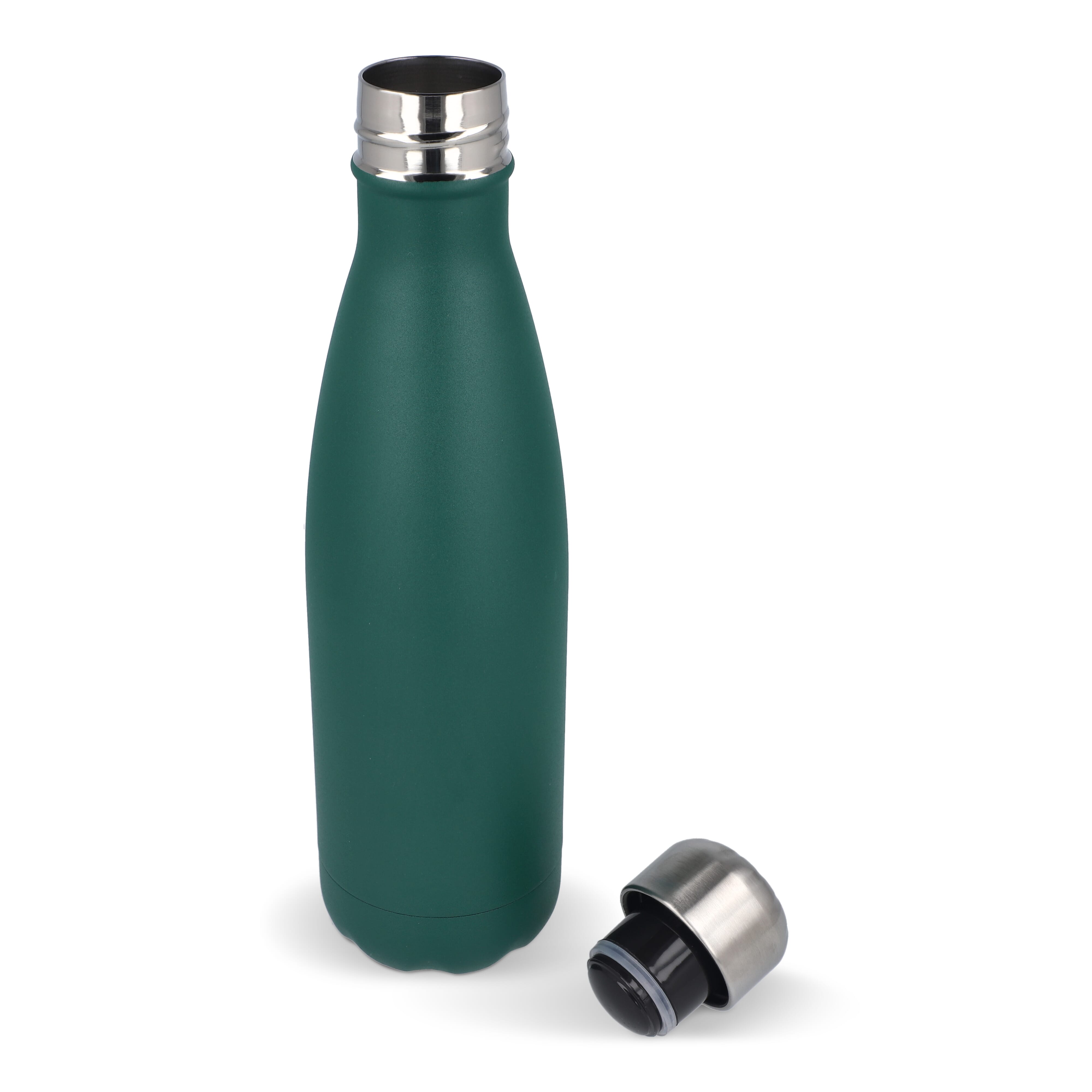 Unsere meistverkaufte Stahlflasche in dunkelgrün. Die Oberfläche ist pulverbeschichtet und bietet einen guten Griff, aber auch eine exklusive Haptik. Die Stahlflasche hat einzigartige Eigenschaften. Sie hält Kälte für 24 Stunden und Wärme für 12 Stunden. Fassungsvermögen 500ml.