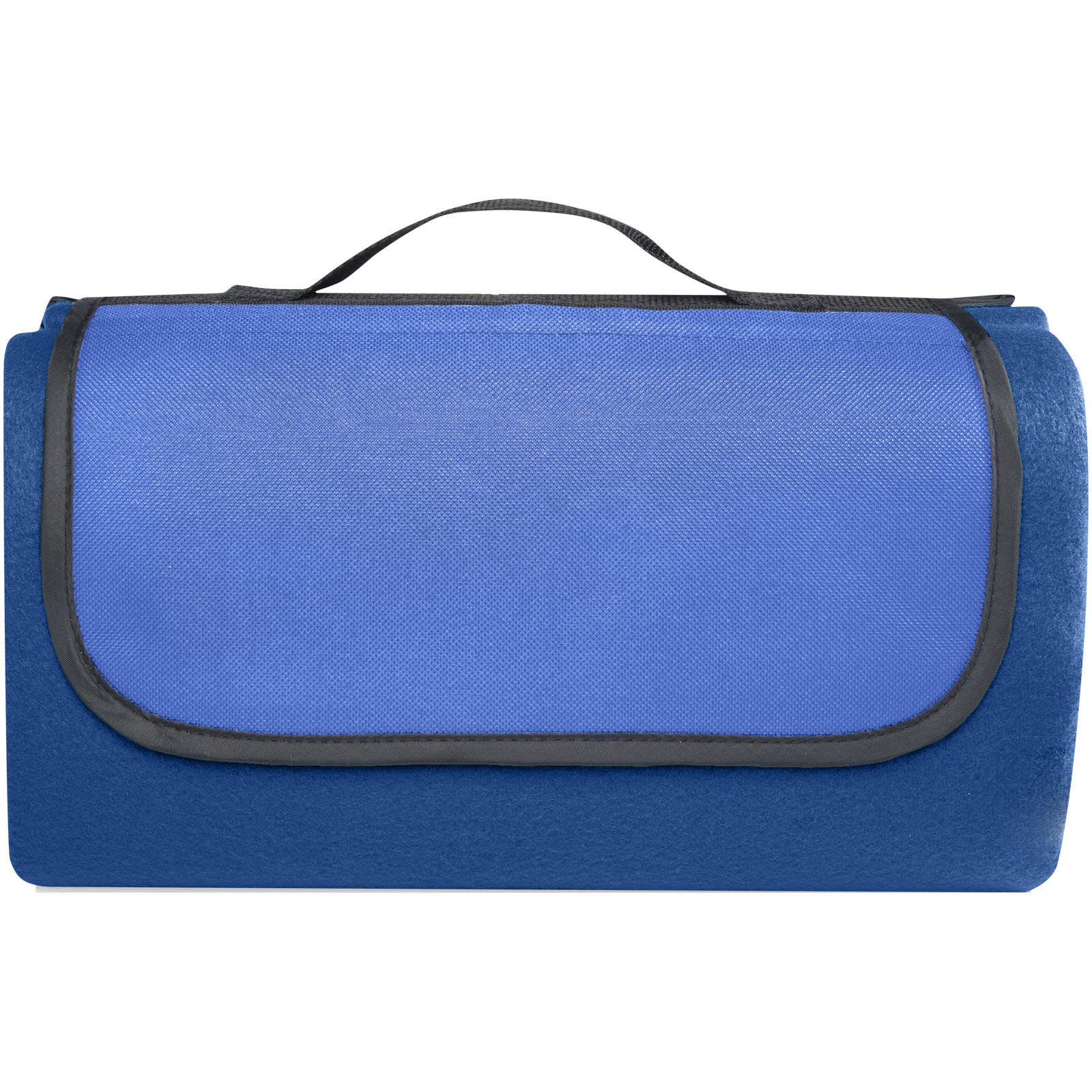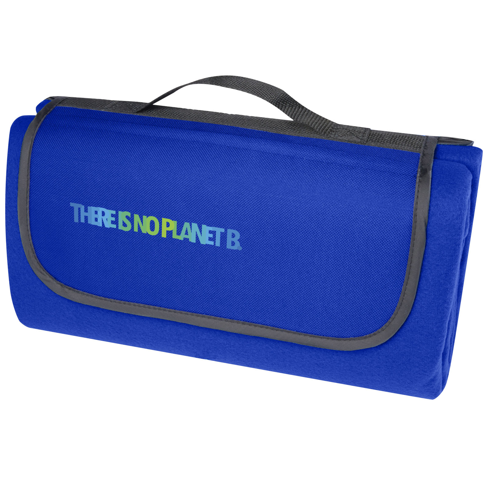 Wasserabweisende Picknickdecke aus recyceltem PET Kunststoff (140 g / m2). Einmal gefaltet und gesichert, lässt sich die Decke mit dem mitgelieferten Tragegriff leicht verstauen und transportieren.