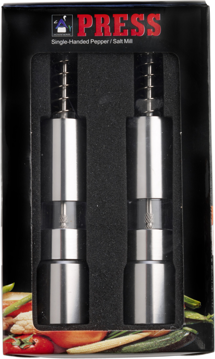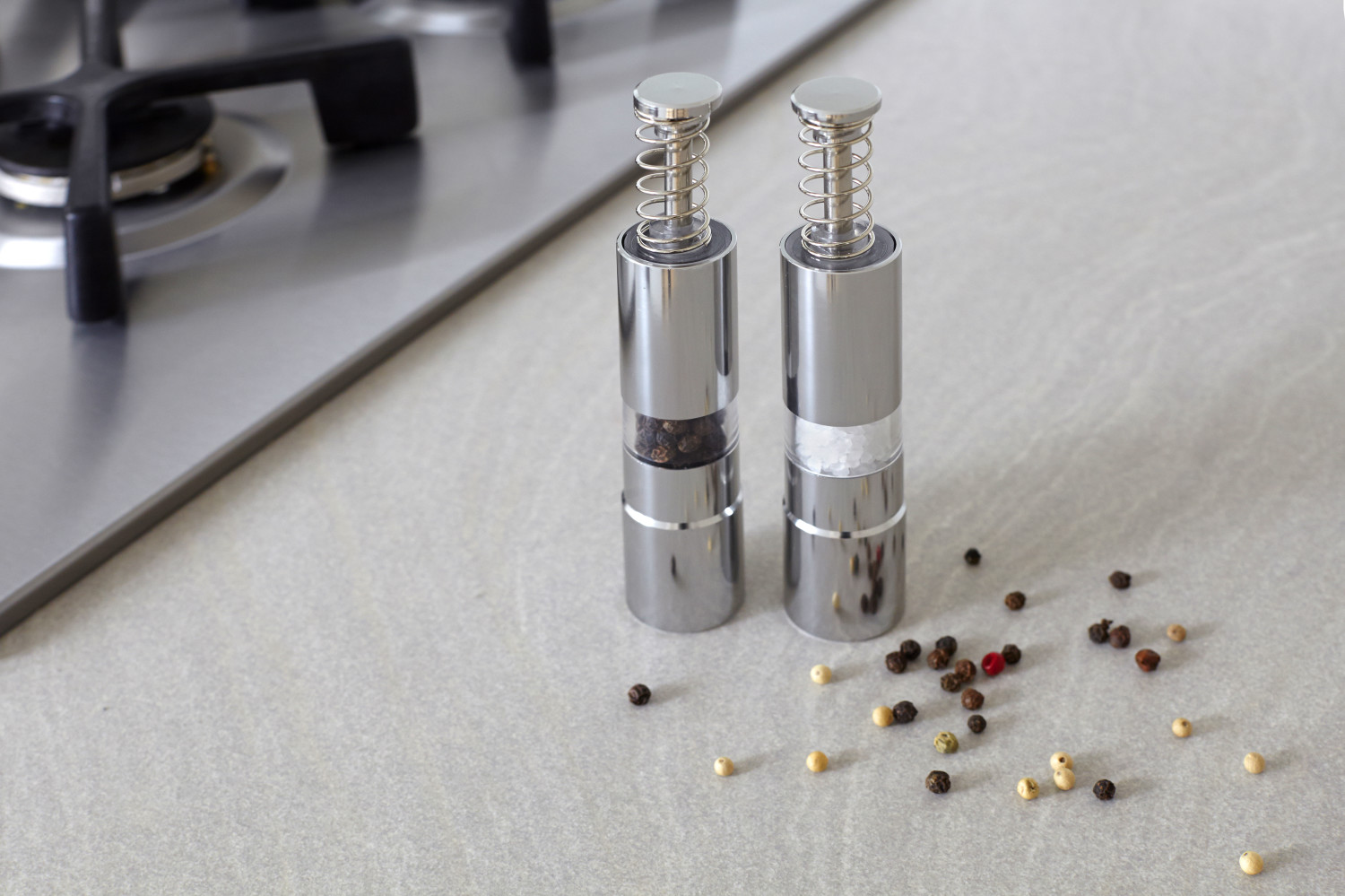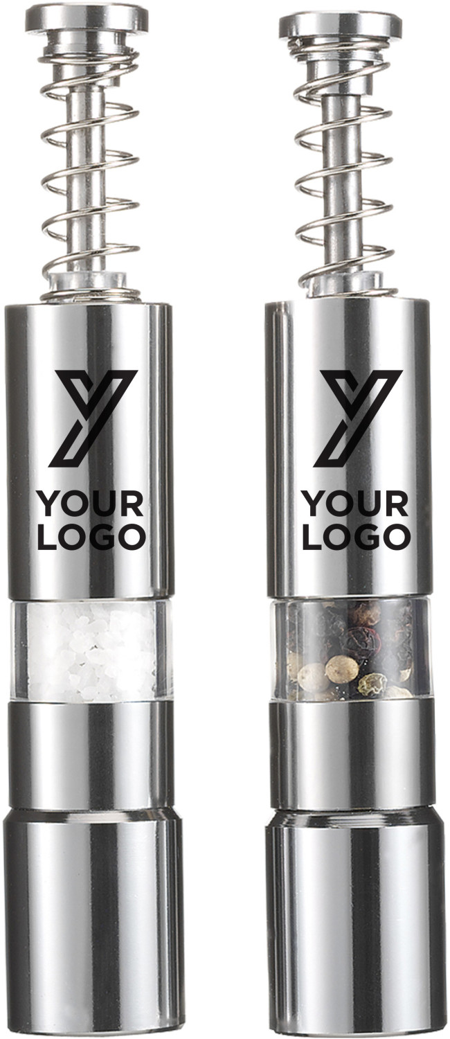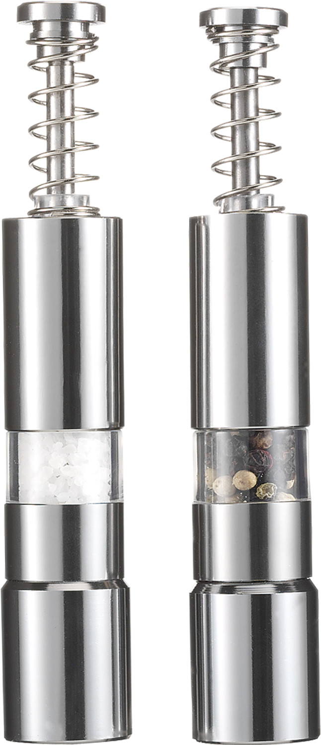 Salz-und Pfefferstreuer aus Metall, 2-tlg., Einhandfunktion.