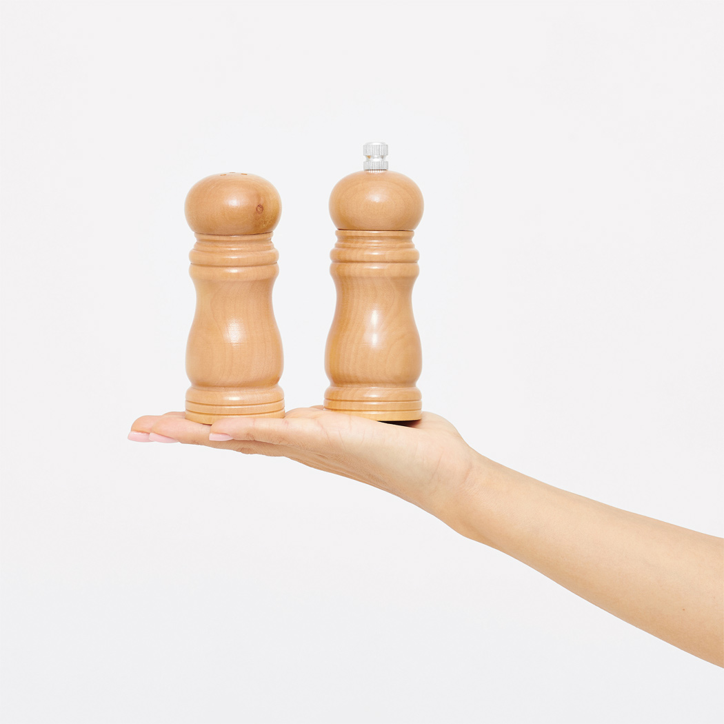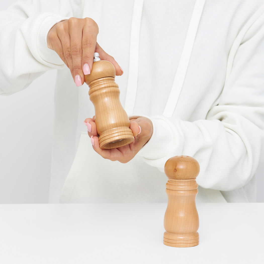 Salzstreuer & Pfeffermühle im Set DUO SPICE: aus Holz, Pfeffermühle mit Drehmechanismus und Keramik-Mahlwerk, Salzstreuer mit 5 Streulöchern zum Dosieren, in Box