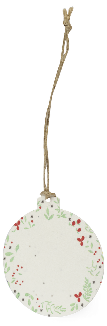 Nachhaltiger und origineller Weihnachtsschmuck aus recyclebarem und abbaubarem Saatgutpapier. Enthält verschiedene farbige Petuniensamen, die das Papier nach seiner Nutzungsdauer in pflanzbares Papier verwandeln. Mit natürlichem Juteaufhänger. Erhältlich in 3 Designs: Kugel, Stern und Baum. Präsentiert in einer Tüte aus recyceltem Papier. Mit Pflanzanleitung in Spanisch und Englisch.