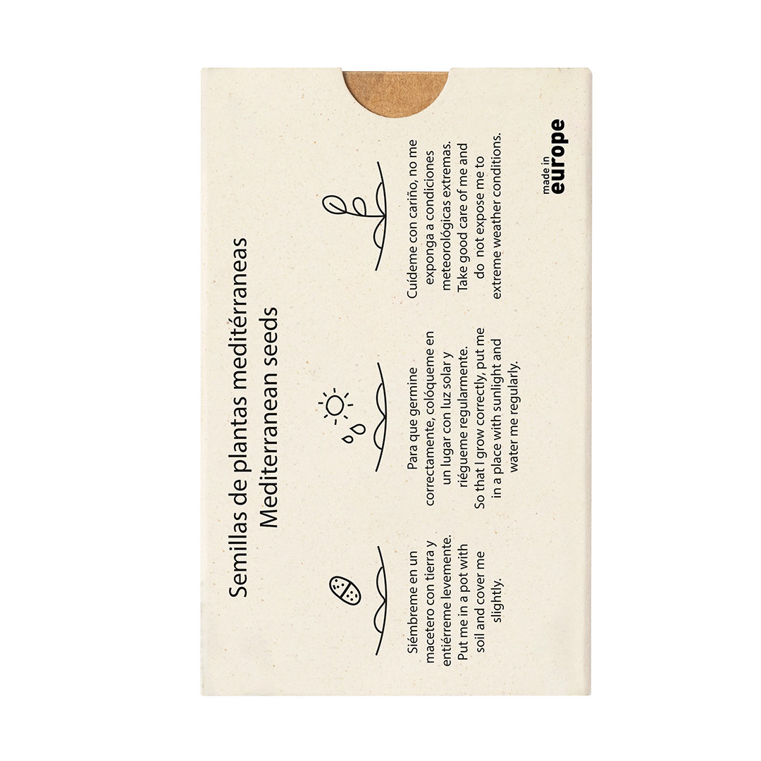 Saatgutkapselset in einer gestanzten Schachtel aus recyceltem Karton mit Pflanzanleitung. Dieses Gemüsegarten-Set enthält Lavendel-, Fenchel- und Dillsamen.