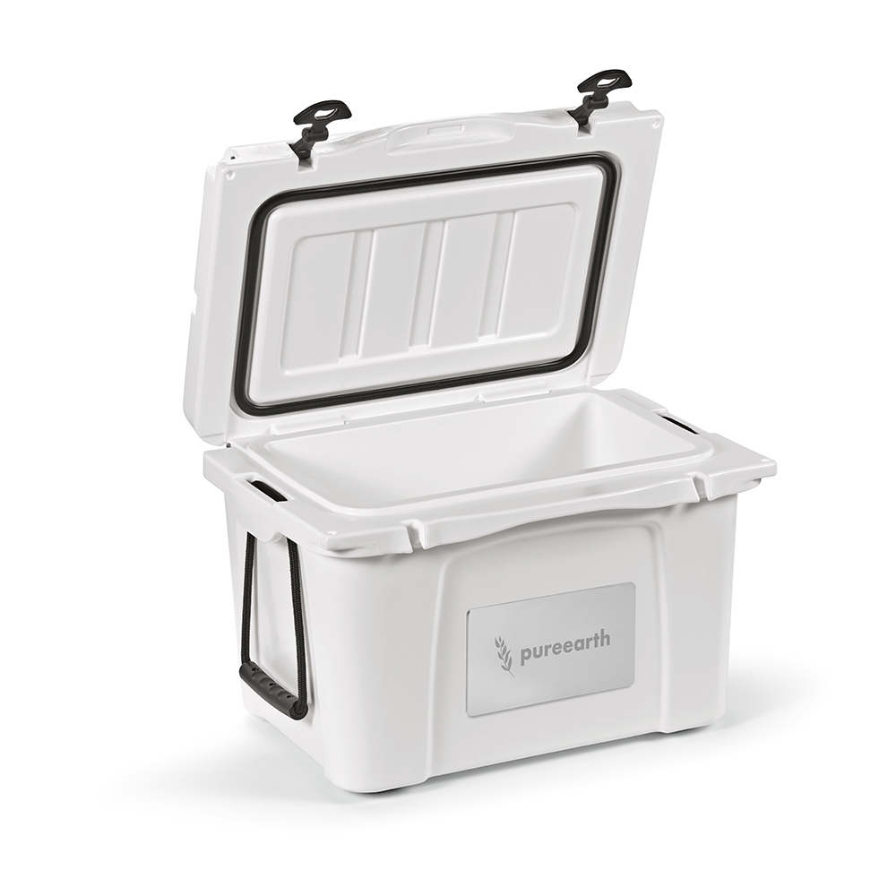 Dieser San Francisco Kühlbox mit 35 L Fassungsvermögen aus recyceltem Kunststoff wurde für Komfort und Langlebigkeit entwickelt. Sie verfügt über doppelte Seilgriffe an jeder Seite sowie Griffmulden mit integriertem Flaschenöffner für einfaches Tragen und praktische Funktionalität. Ein Wasserablauf am Boden mit schwarzem Verschluss ermöglicht schnelles und sauberes Entleeren. Die Stahlplatte (20 x 10cm) auf der Front verleiht der Kühlbox einen eleganten Look, während der Deckel zwei Getränkehalter und ein eingebautes Maßlineal für Outdoor-Abenteuer bietet. Das isolierte Gehäuse sorgt dafür, dass Ihre Erfrischungen bis zu 4 Tage lang kühl bleiben. Geeignet für bis zu 48 Dosen.