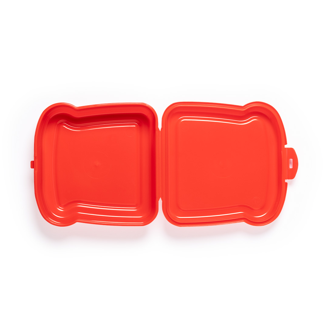 Brotdose mit 450 ml Fassungsvermögen in verschiedenen lebhaften Farben. Mit Sicherheitsverschluss.