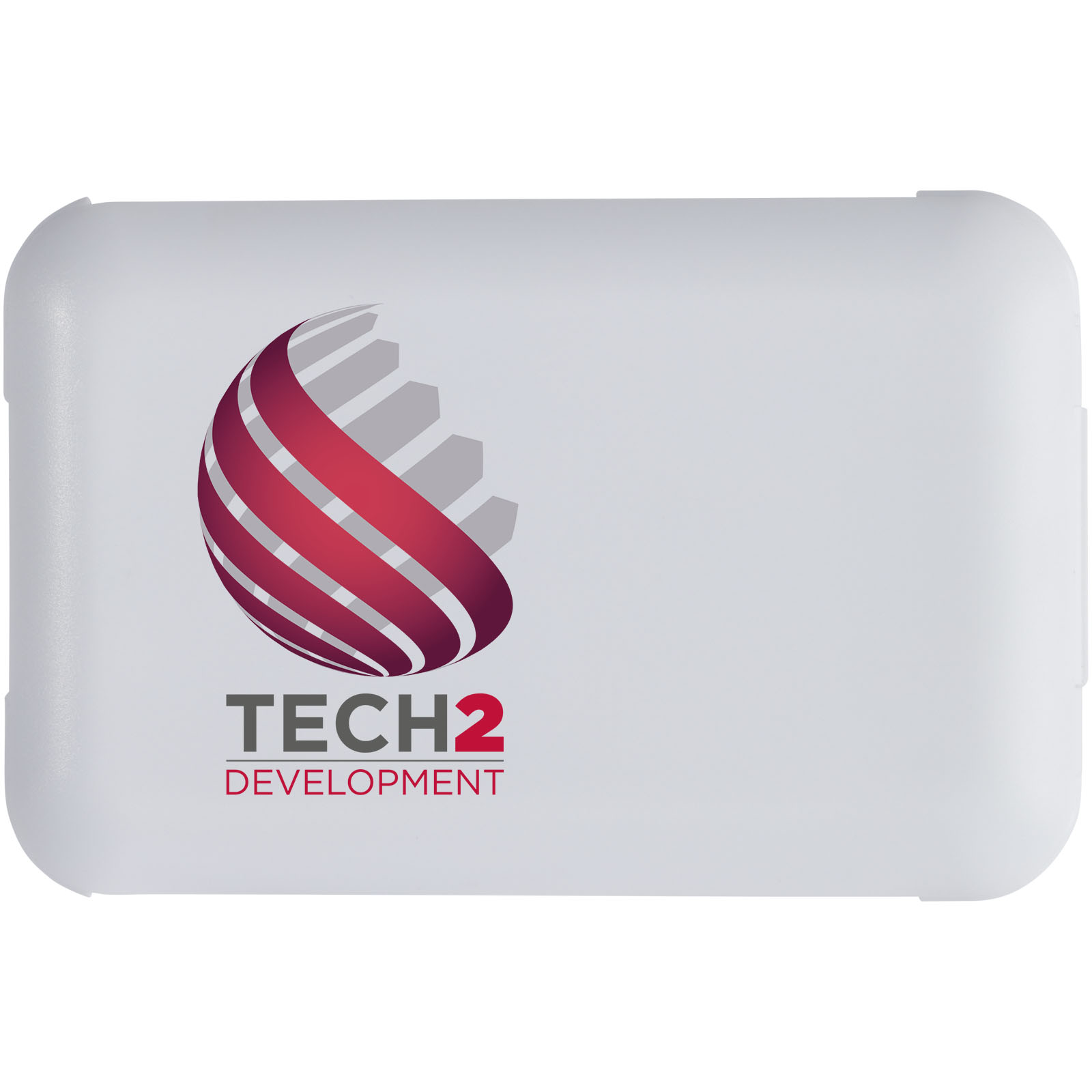 Modulares Datenübertragungs- und Ladekabel aus recyceltem Kunststoff, geliefert in einer eleganten Aufbewahrungsbox, die auch als Telefonladestation dient. Das Kabel bietet mehrere Ladelösungen: Typ-C- und USB-A-Eingang und Typ-C / iOS / Micro-USB-Ausgang. Dank all dieser Adapter und Anschlüsse können Sie mit diesem Kabel die meisten Smartphones, Kameras, Powerbanks, Ohrhörer usw. aufladen. Das Kabel hat eine maximale Ausgangsleistung von 2 A. Sie verfügt über einen Auswurfstift, der immer dann nützlich ist, wenn Sie die SIM-Karte Ihres Telefons herausnehmen müssen. Die Aufbewahrungsbox bietet außerdem Platz für eine Micro-SD-Speicherkarte sowie eine Nano-SIM-Karte und ist damit das perfekte Reisezubehör. Länge des Kabels: 26 cm. Wird in einem Umschlag aus 100% recyceltem Kraftpapier geliefert.