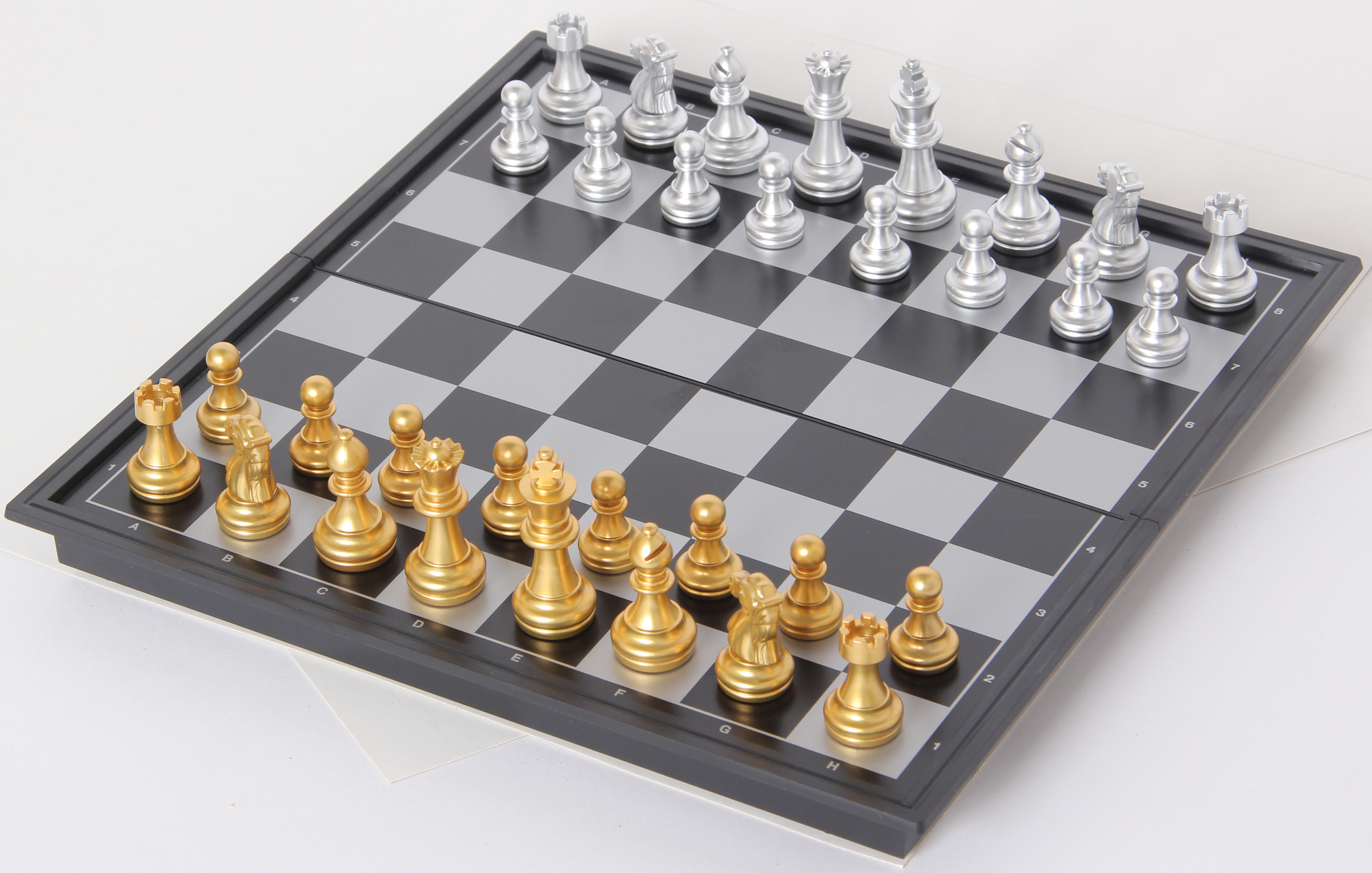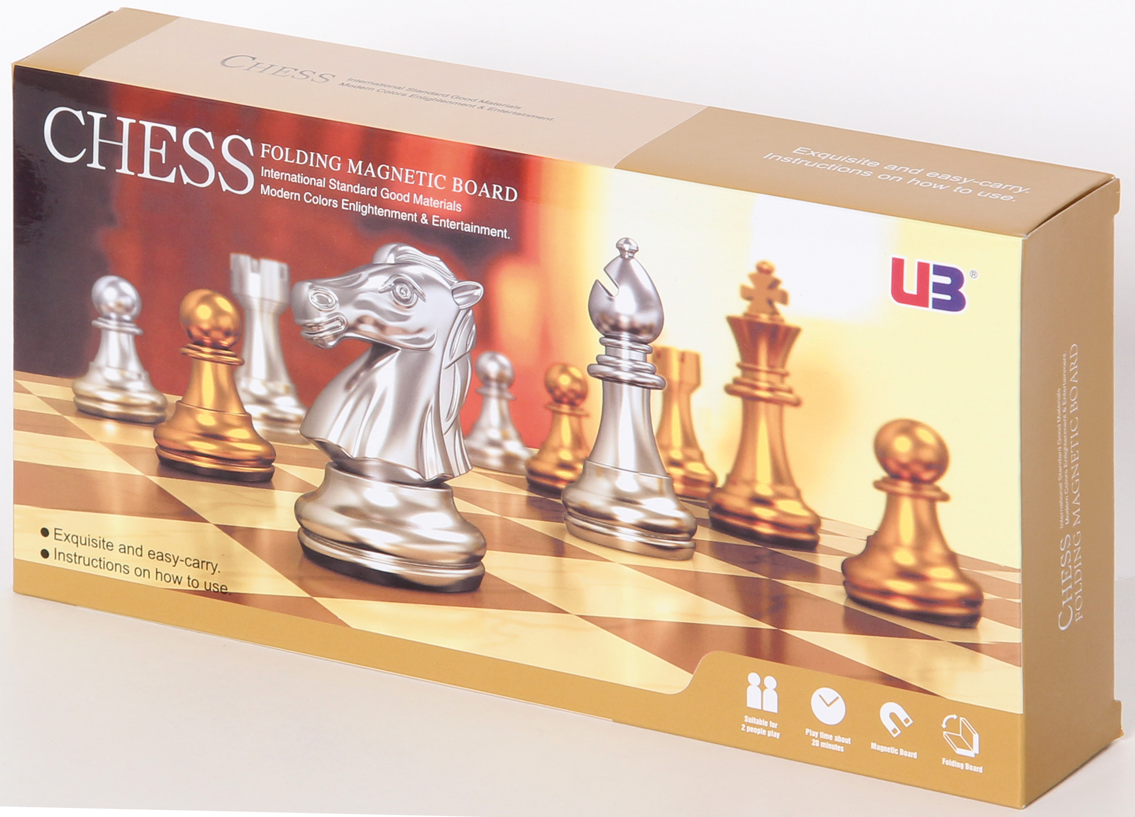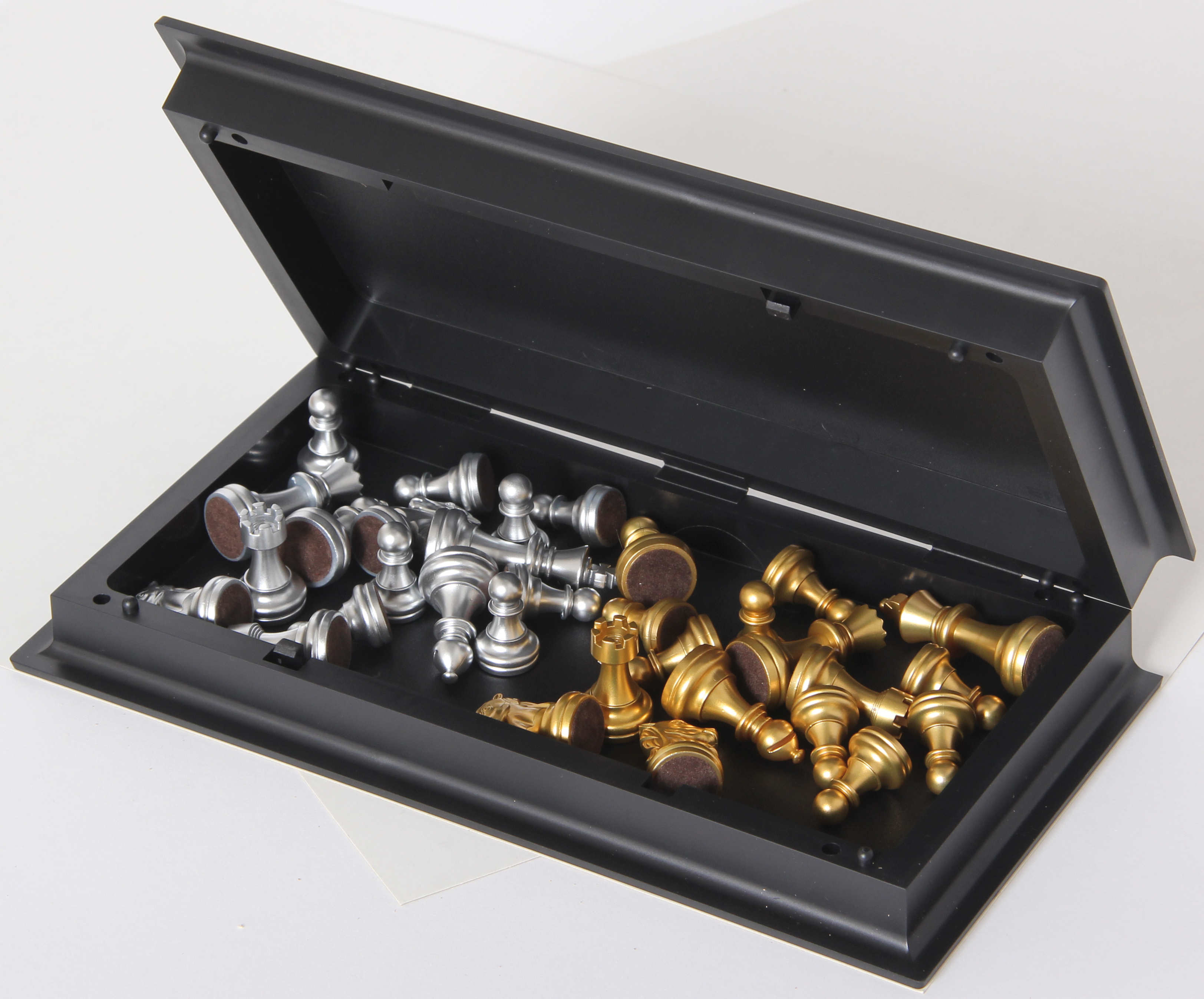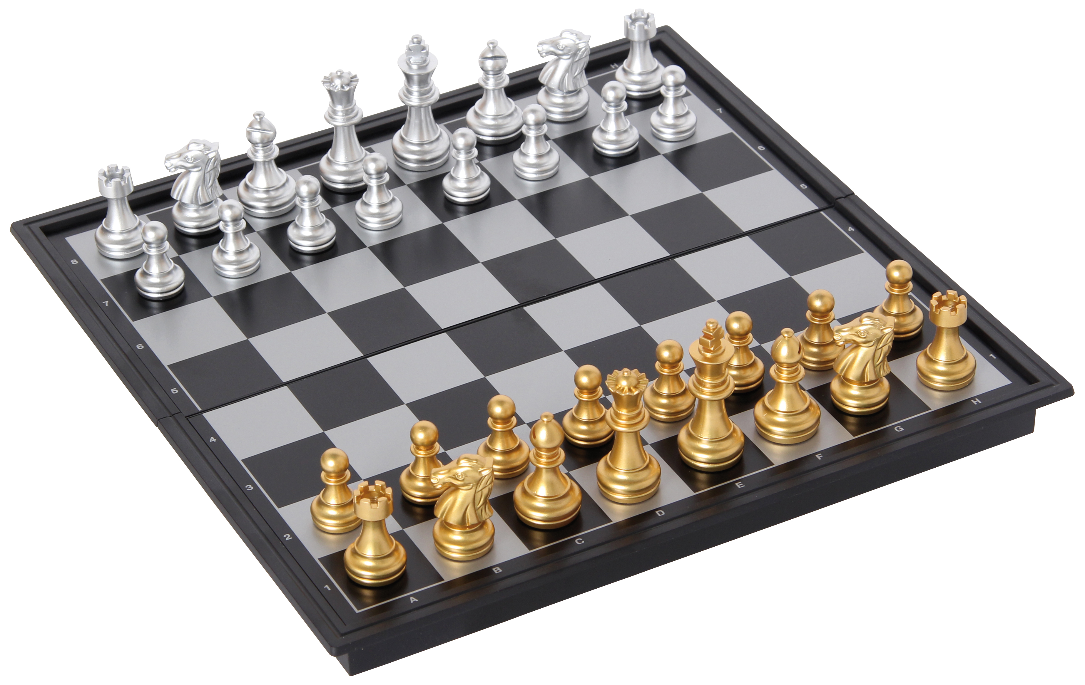 Das klassische Brettspiel ist mit seinen magnetischen Figuren optimal für unterwegs. Die schwarz- und silberfarbene Spielfläche ist klappbar und zugleich Aufbewahrungsbox für die Spielfiguren. Die Königshöhe ist 4,92 cm.