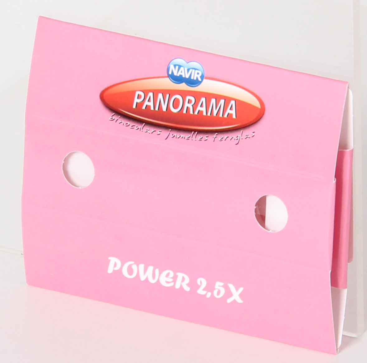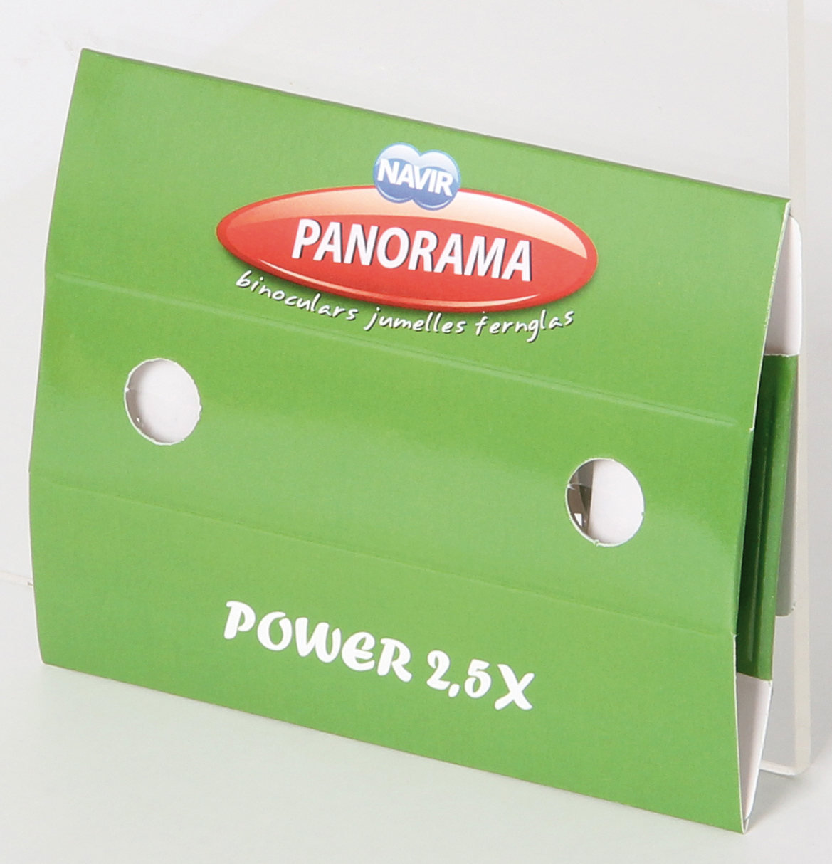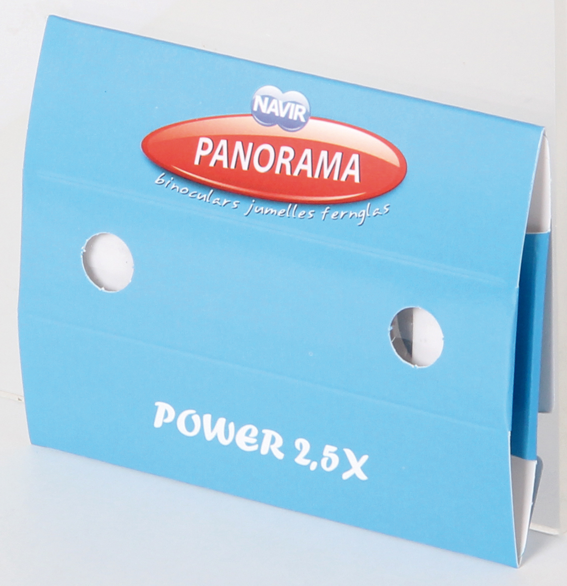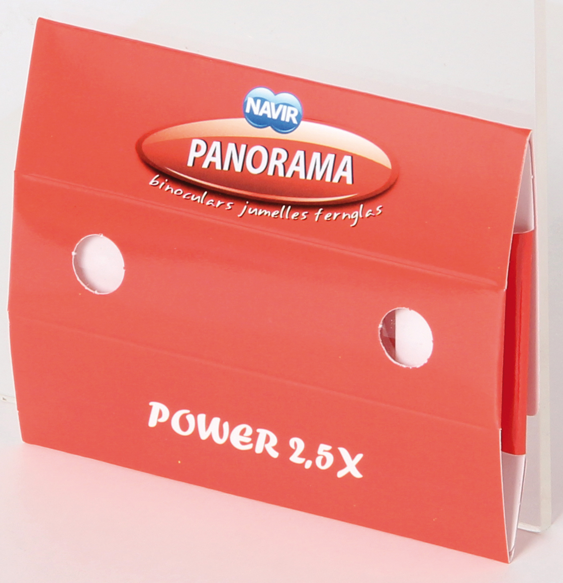Originelles Taschenfernglas mit 2,5-facher Vergrößerung. Passt in jede Hand- oder Jackentasche. Sortiert in den Farben gelb, rot, grün, blau.