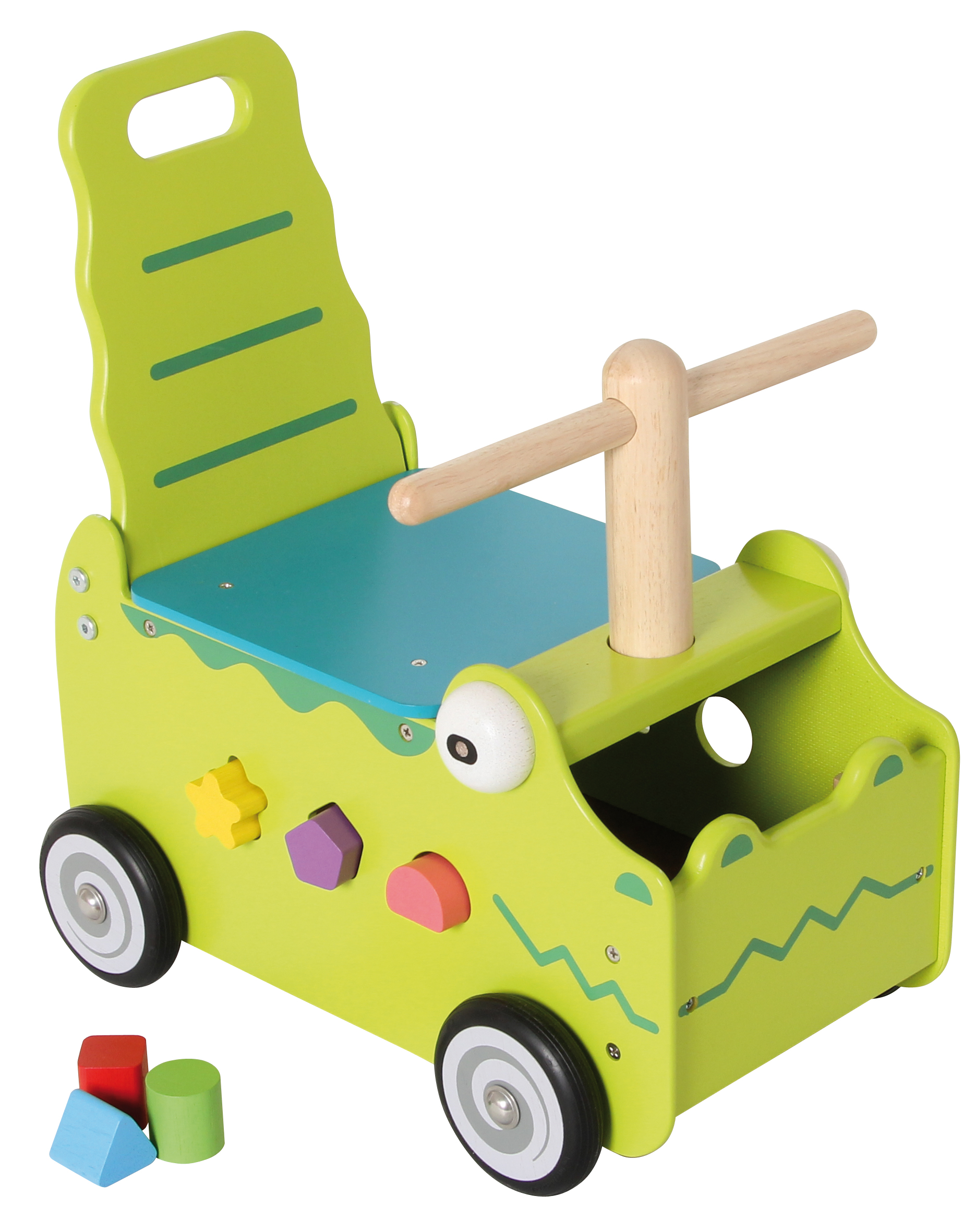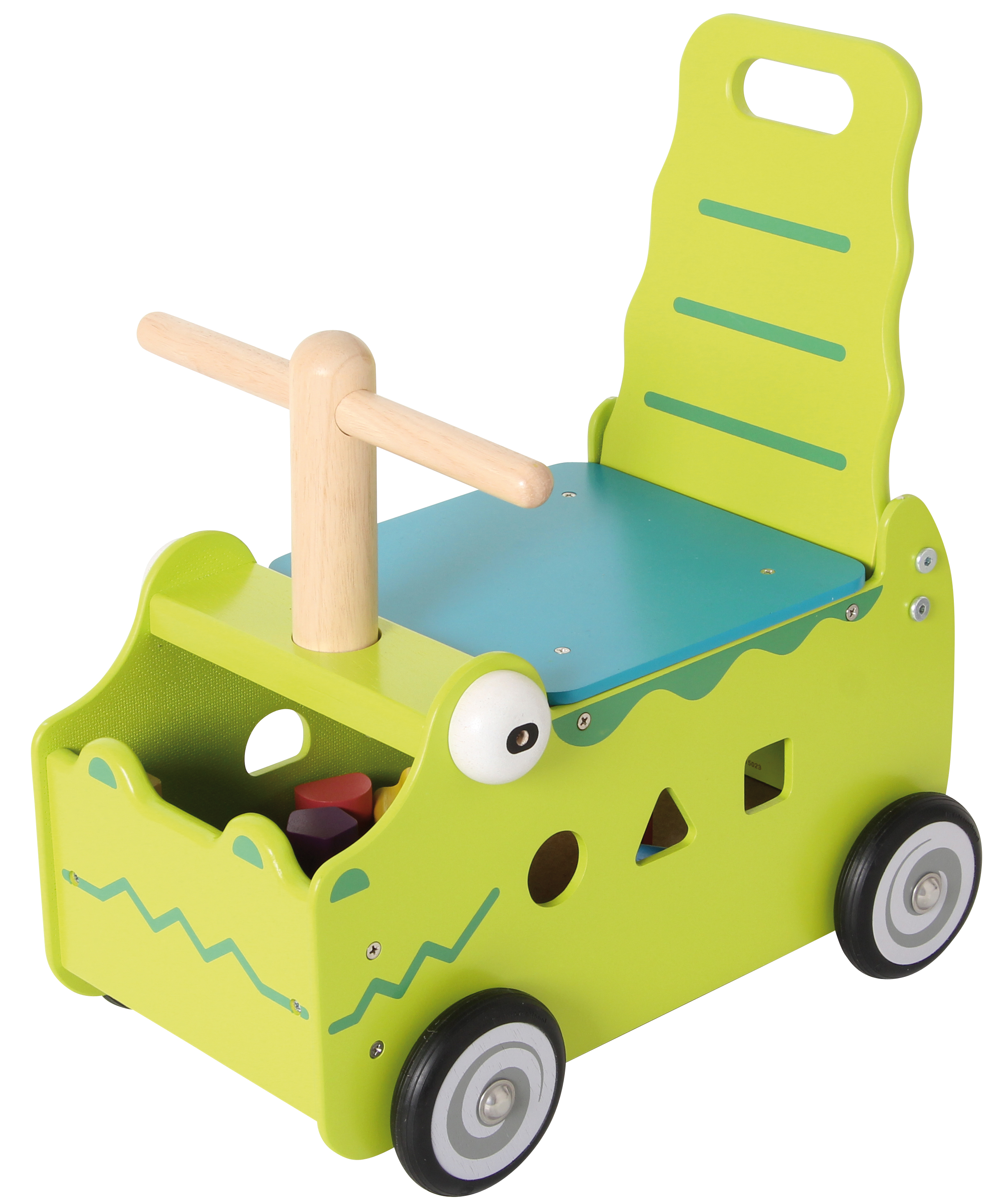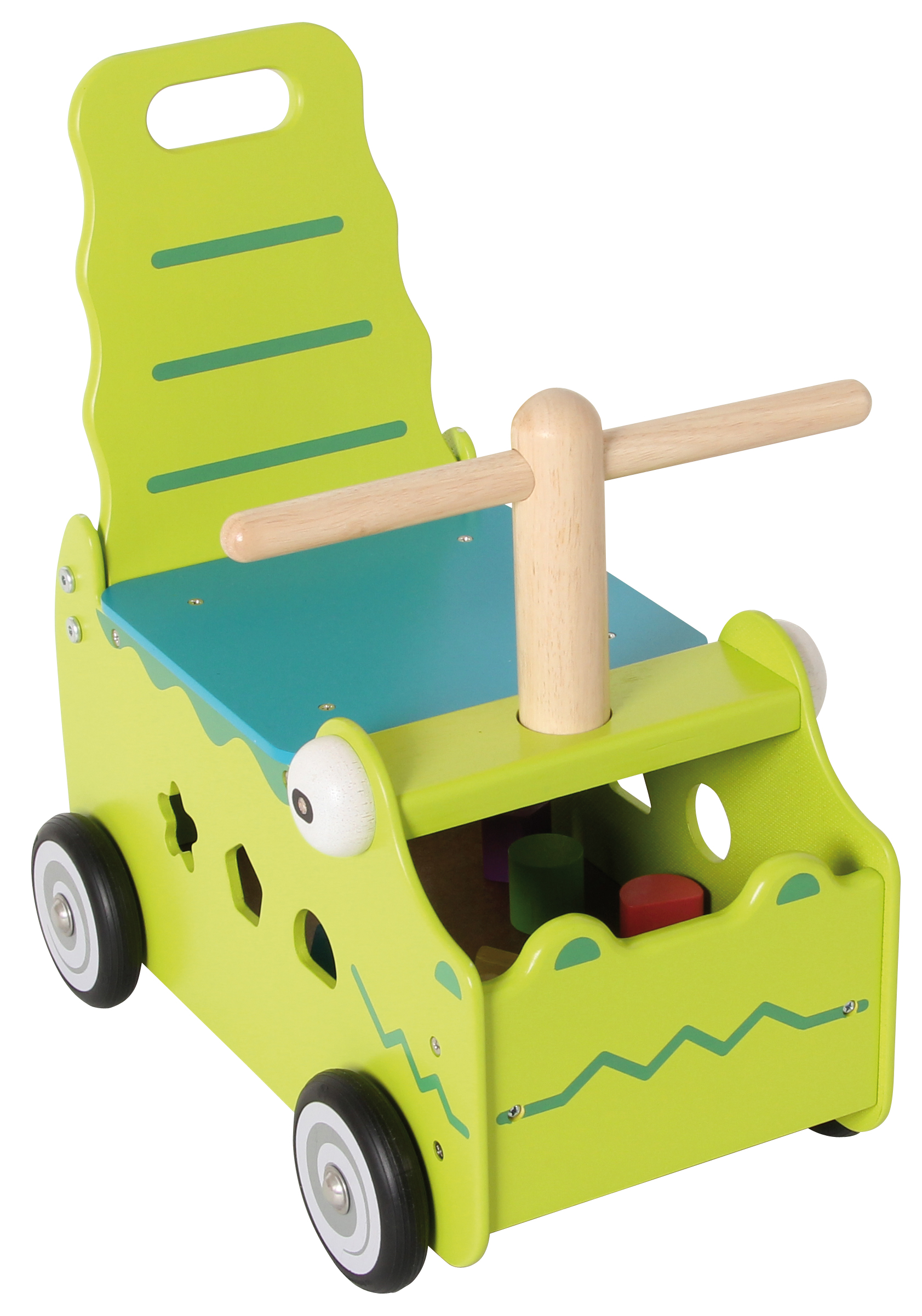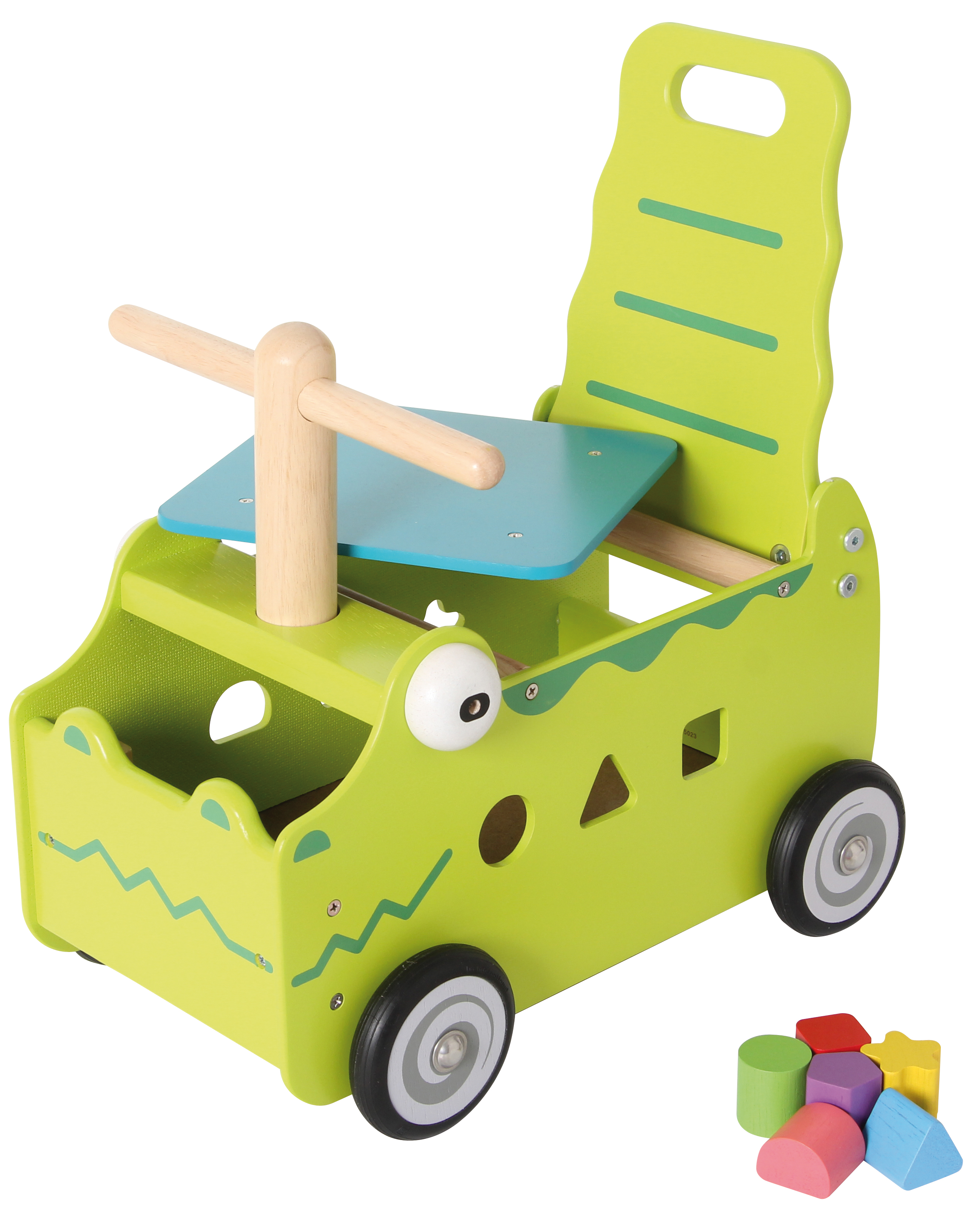 Stabiler Spielwagen und zugleich Rutscher aus Holz. Das freundliche Krokodil hat eine abnehmbare Sitzfläche über dem Stauraum und ein integriertes Formensortierspiel. Umweltfreundlich hergestellt aus nachwachsendem Gummibaumholz und mit unbedenklichen Farben lackiert. Sitzhöhe: 20 cm, Griffhöhe: 41,5 cm.