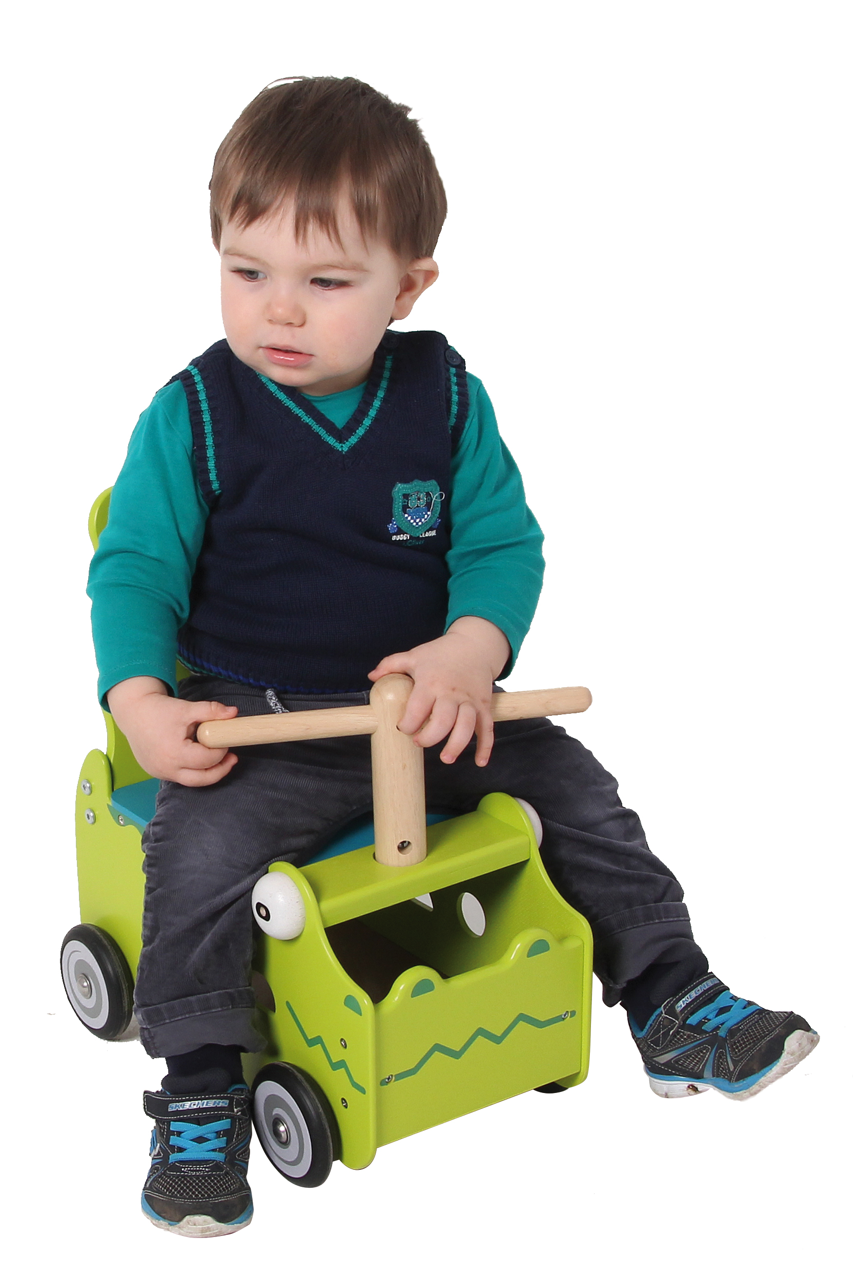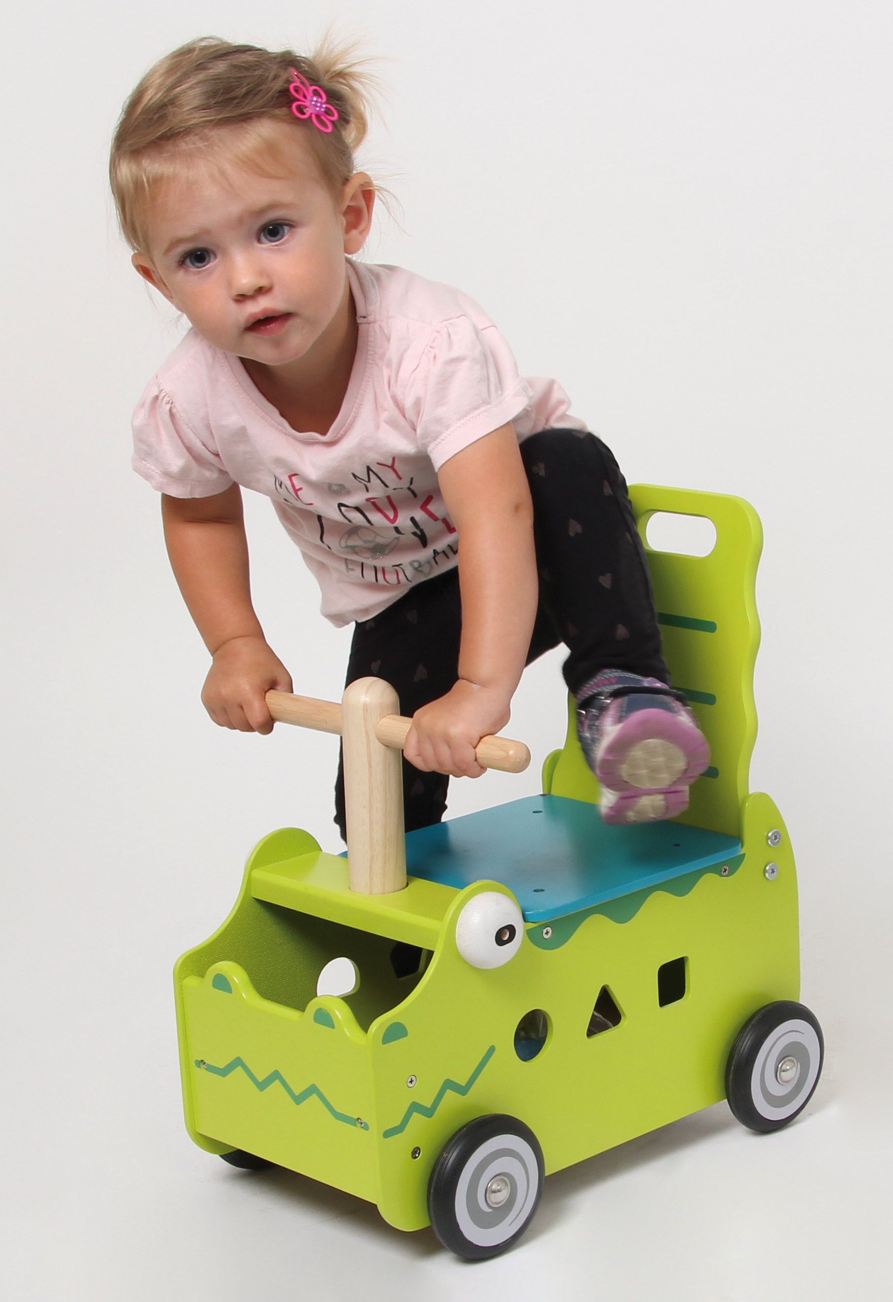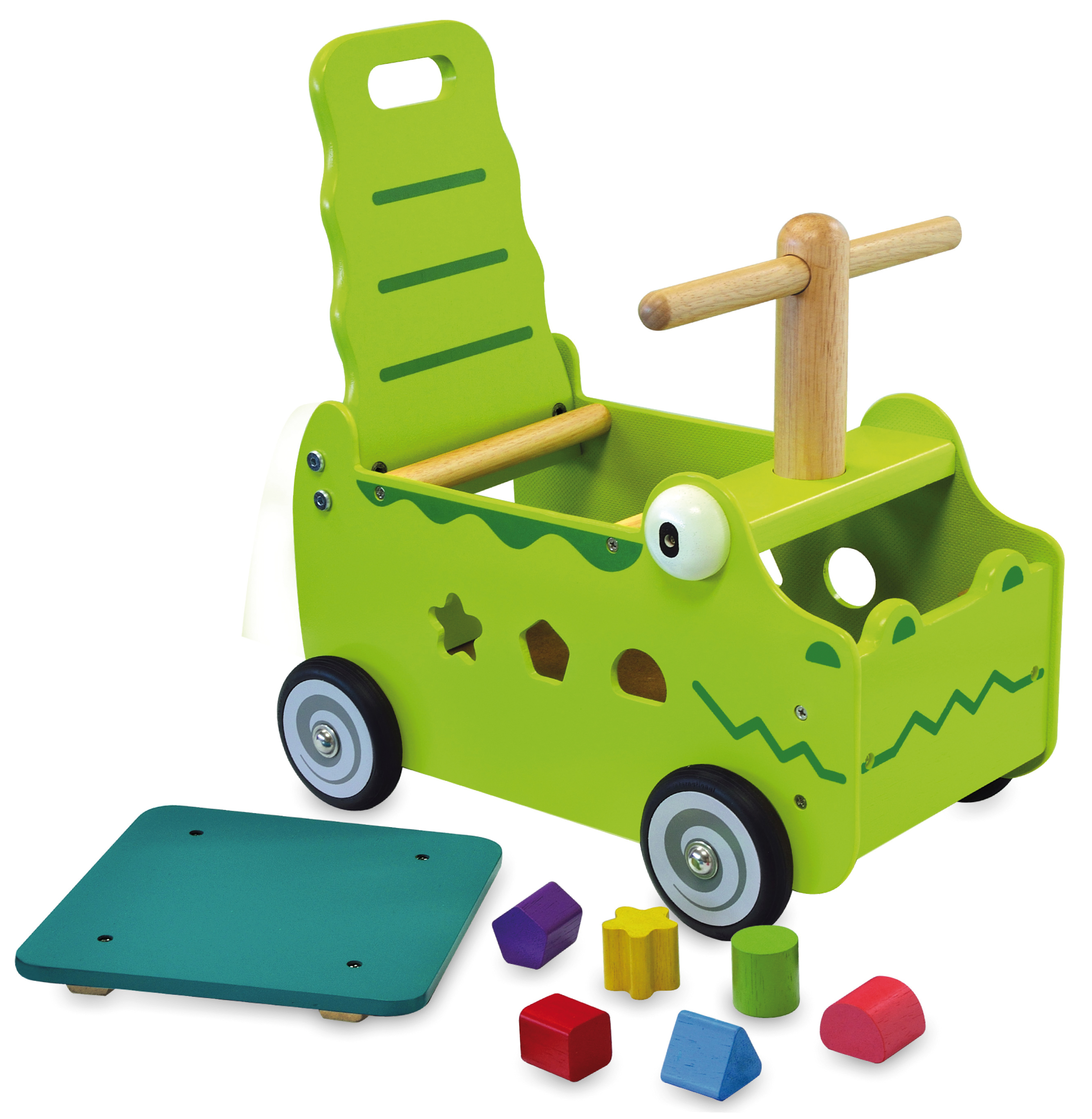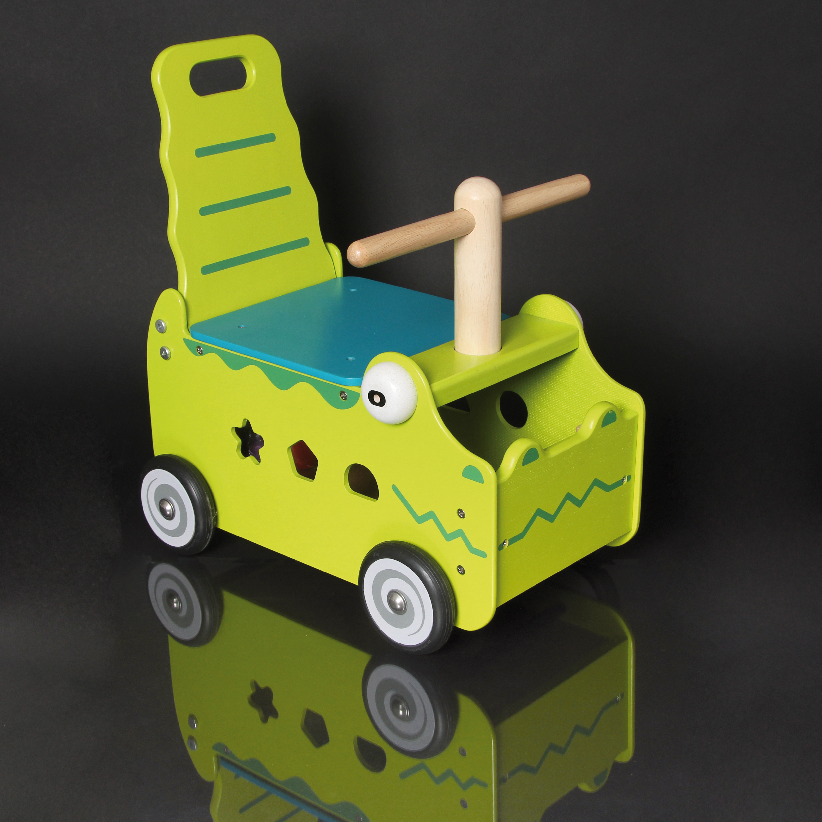 Stabiler Spielwagen und zugleich Rutscher aus Holz. Das freundliche Krokodil hat eine abnehmbare Sitzfläche über dem Stauraum und ein integriertes Formensortierspiel. Umweltfreundlich hergestellt aus nachwachsendem Gummibaumholz und mit unbedenklichen Farben lackiert. Sitzhöhe: 20 cm, Griffhöhe: 41,5 cm.
