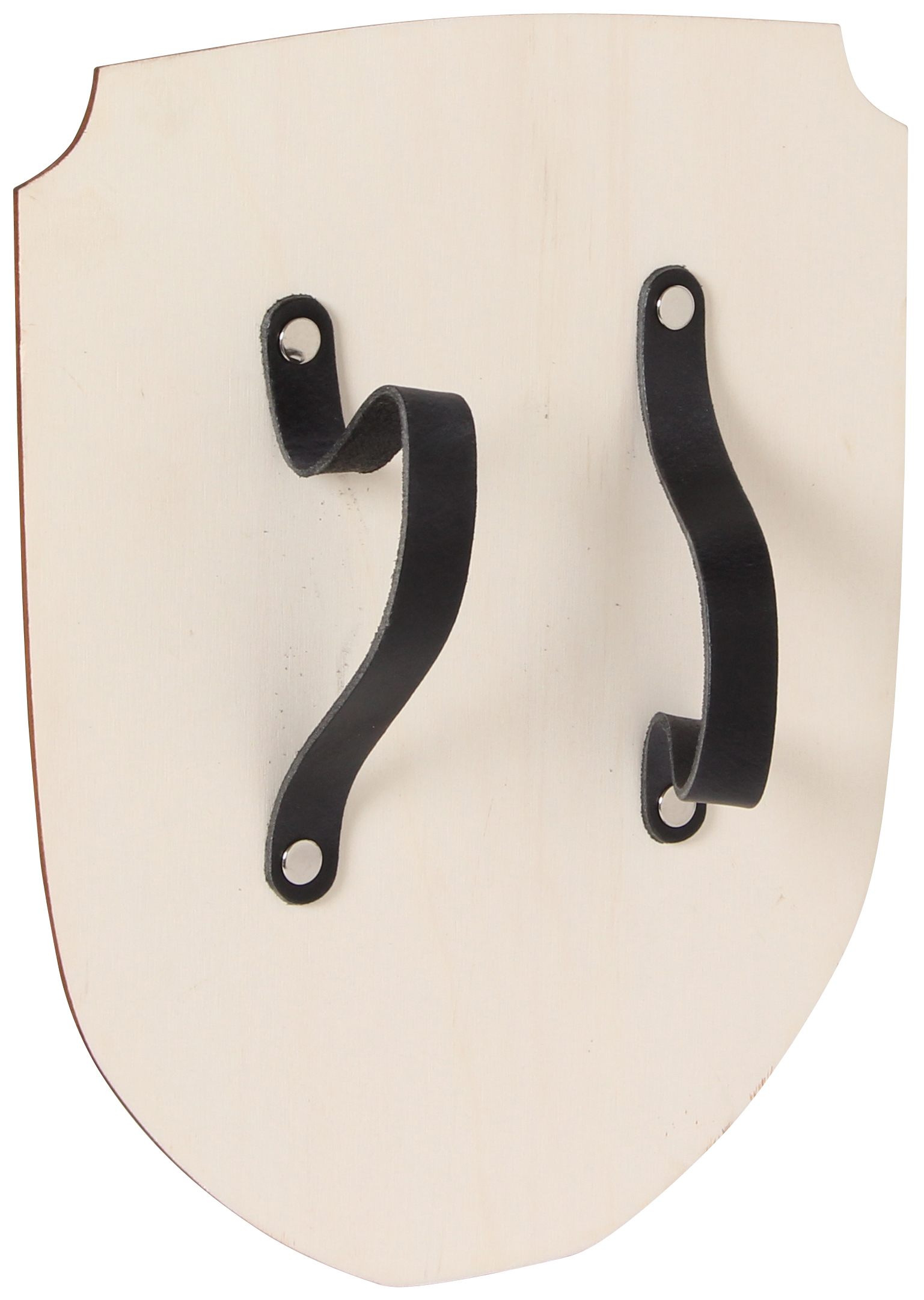 Ein Schild für kleine Ritter. Aus Holz. Mit Leder-Halteriemen auf der Rückseite. Made in Germany.
