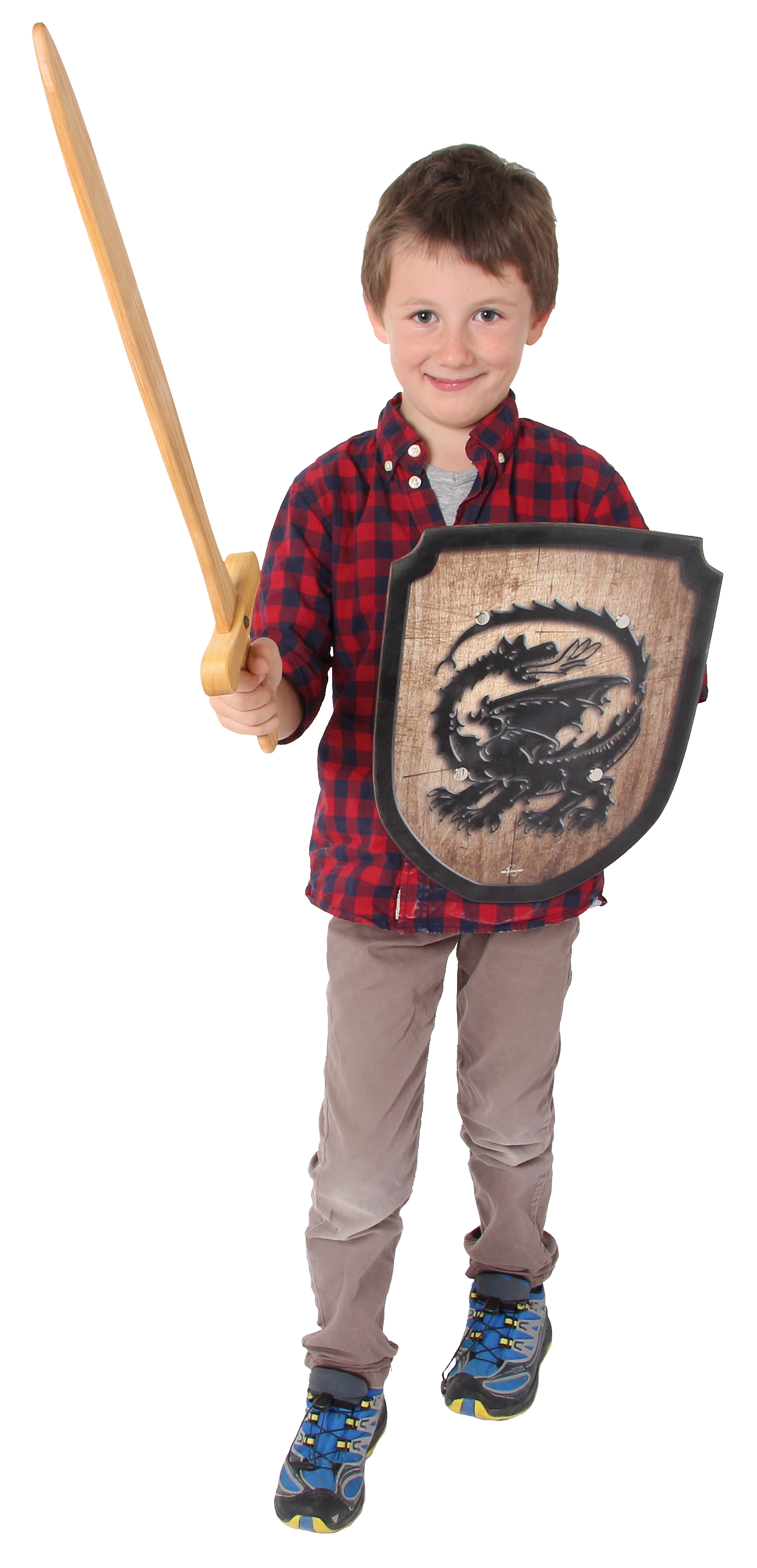Ein Schild für kleine Ritter. Aus Holz. Mit Leder-Halteriemen auf der Rückseite. Made in Germany.