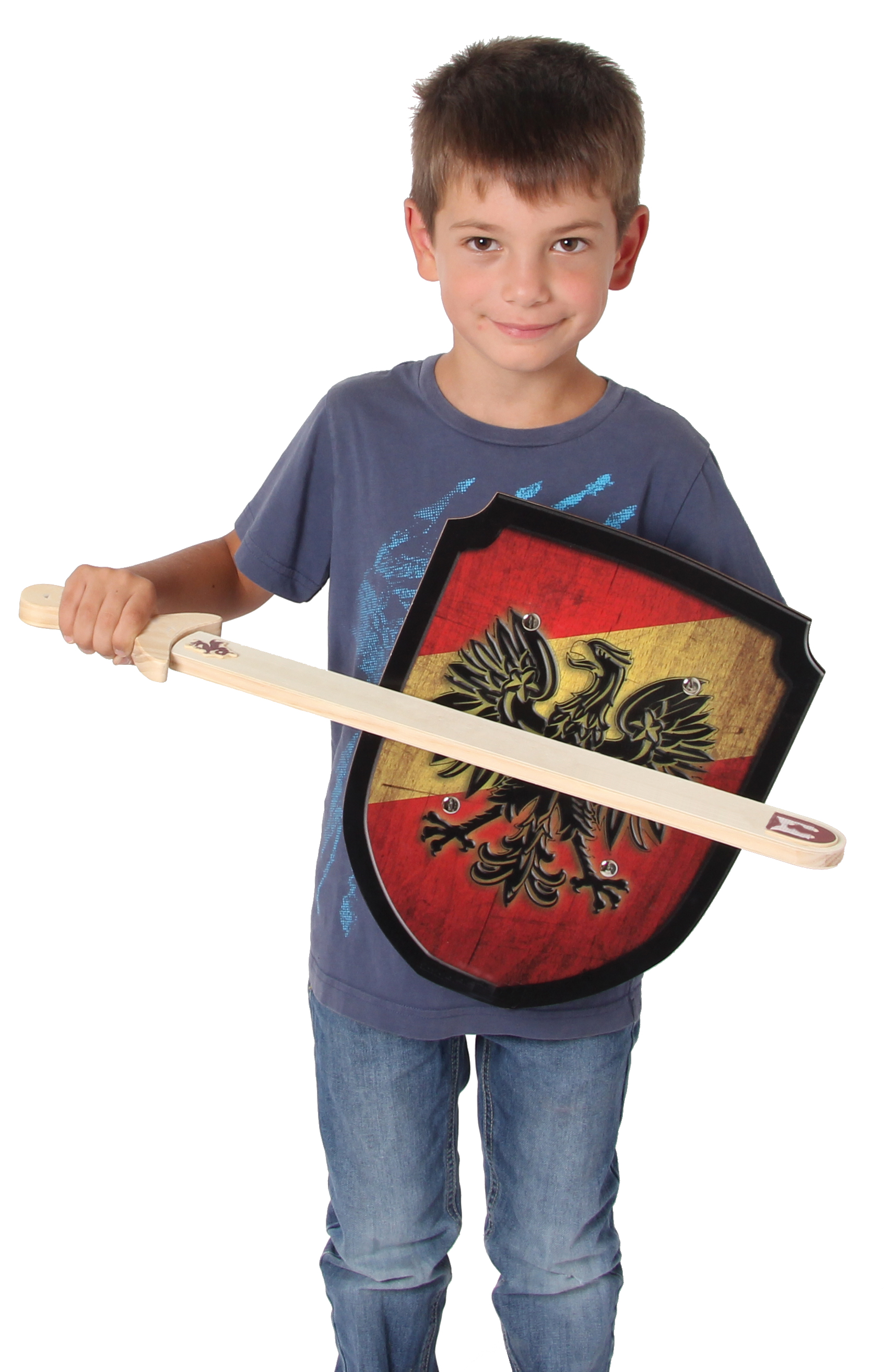 Ein Schild für kleine Ritter. Aus Holz. Mit Leder-Halteriemen auf der Rückseite. Made in Germany.