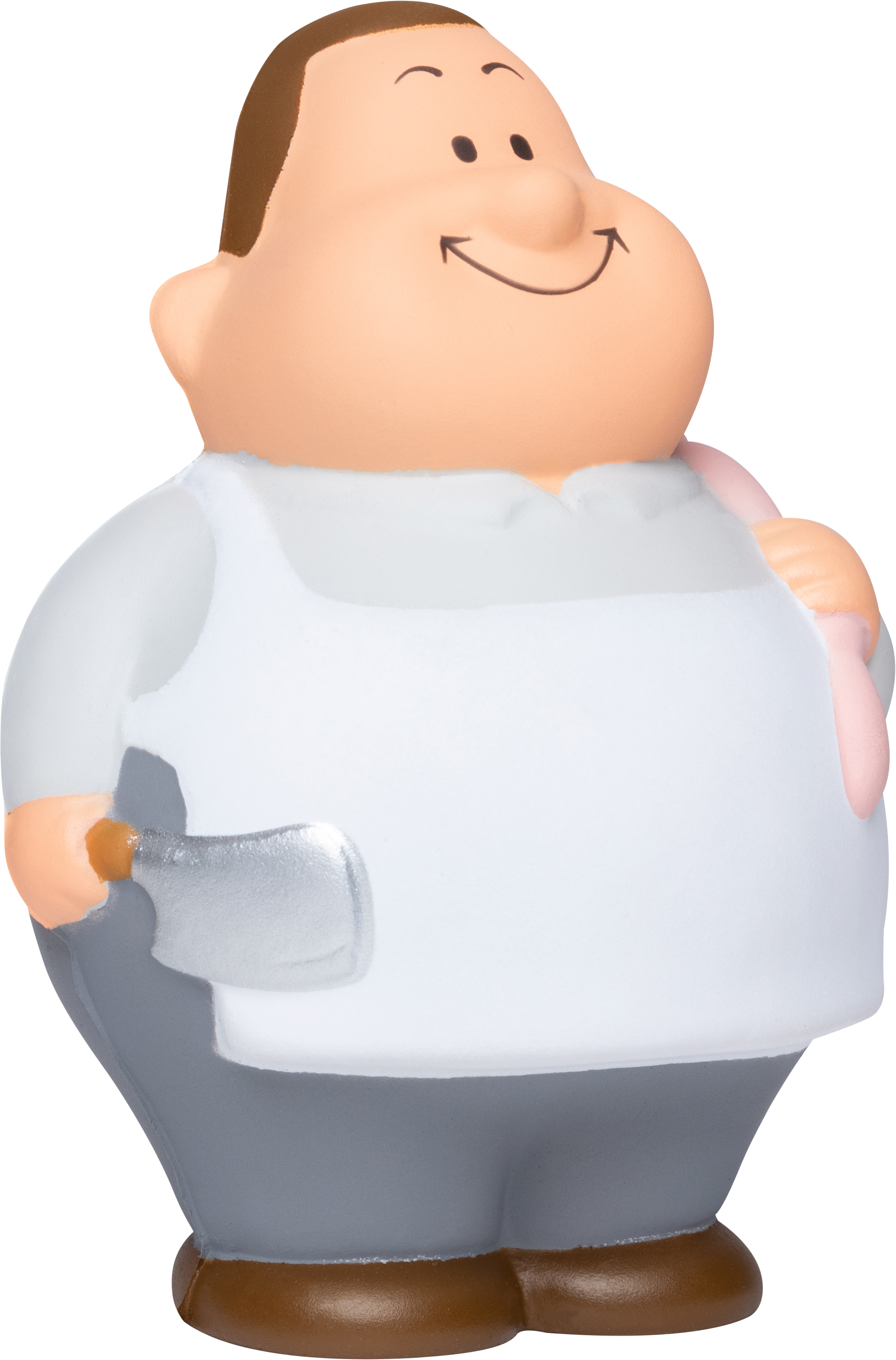 Der talentierte Allrounder Bert® stellt sein Können als Schlachter unterbeweis. Mit Beil und Würstchenkette hält er gelassen dem größten Andrang an der Wursttheke stand. Wenn es bei Ihnen mal um die Wurst geht: SQUEEZIES® Schlachter Bert® zum Abbau von Stress einfach "zusammenknautschen". Durch die Materialbeschaffenheit nimmt das Produkt die Ursprungsform wieder ein.