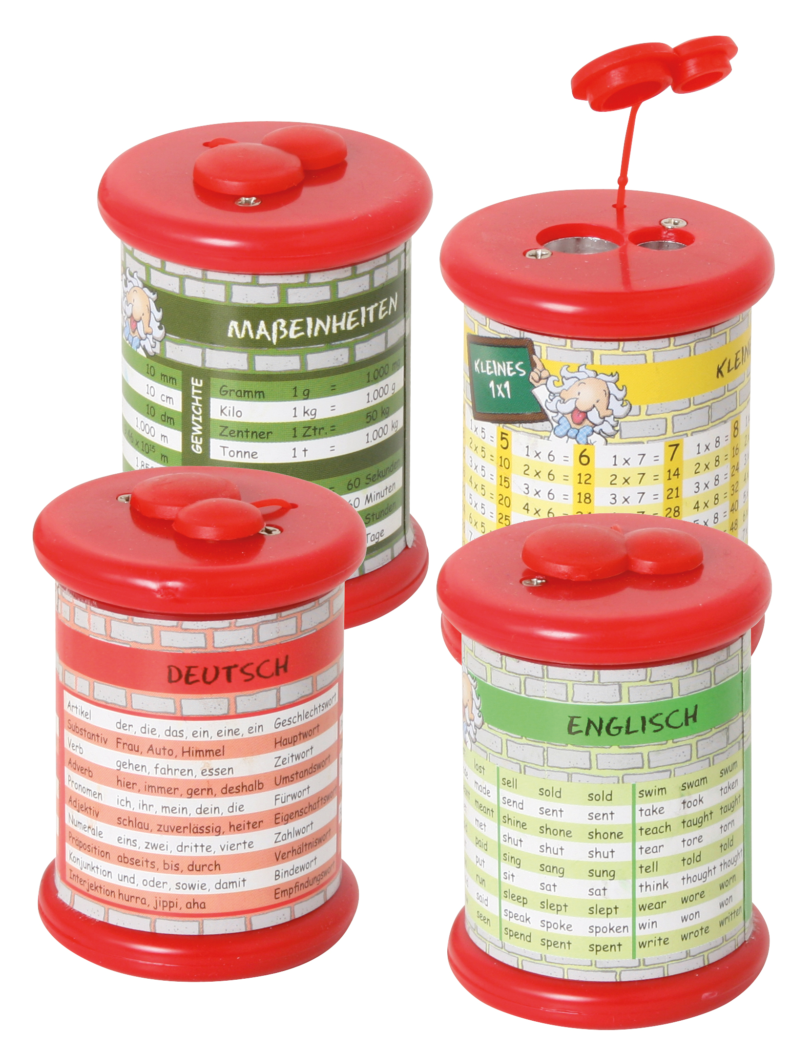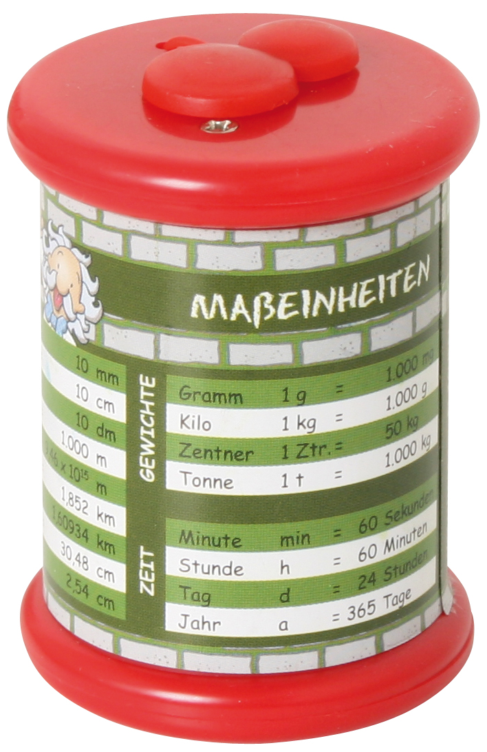 Der Metall-Doppelspitzer mit Spicker ist das Must Have in Schülerkreisen. Viele Spicker-Motive sortiert: Deutsch, Englisch, Einmaleins, Mathematik, etc.