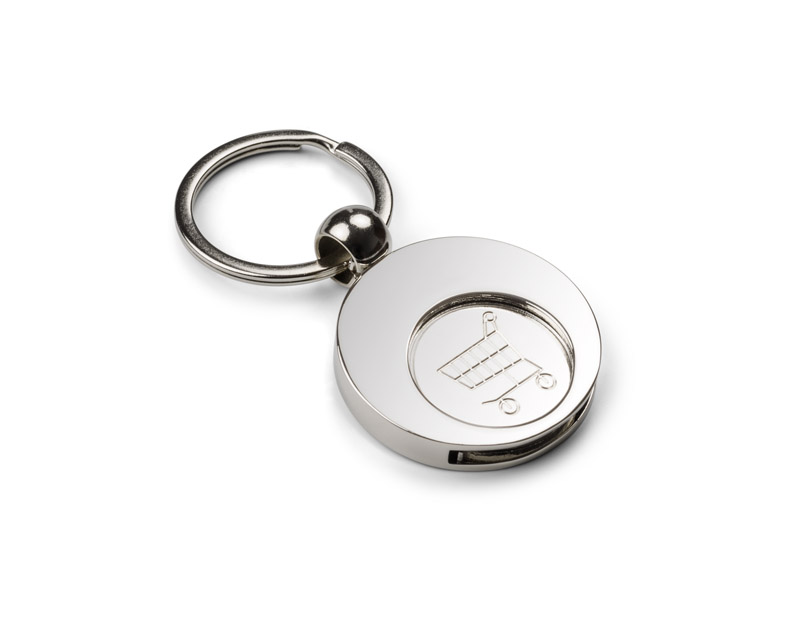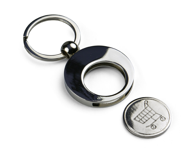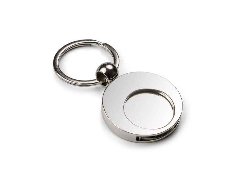 Münzhalter Schlüsselanhänger. 1 Euro große Münze aus Kunststoff.