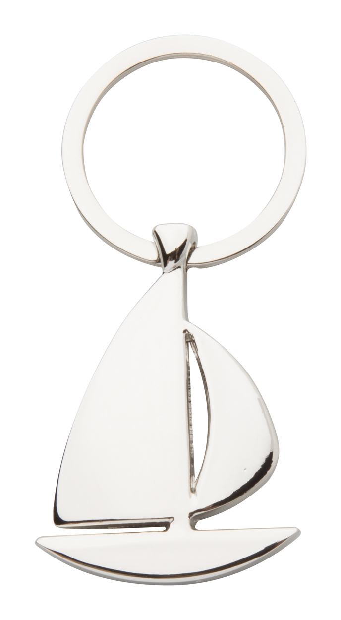 Metall-Schlüsselanhänger in Form eines Segelbootes. Einzeln in schwarzer Geschenkbox.