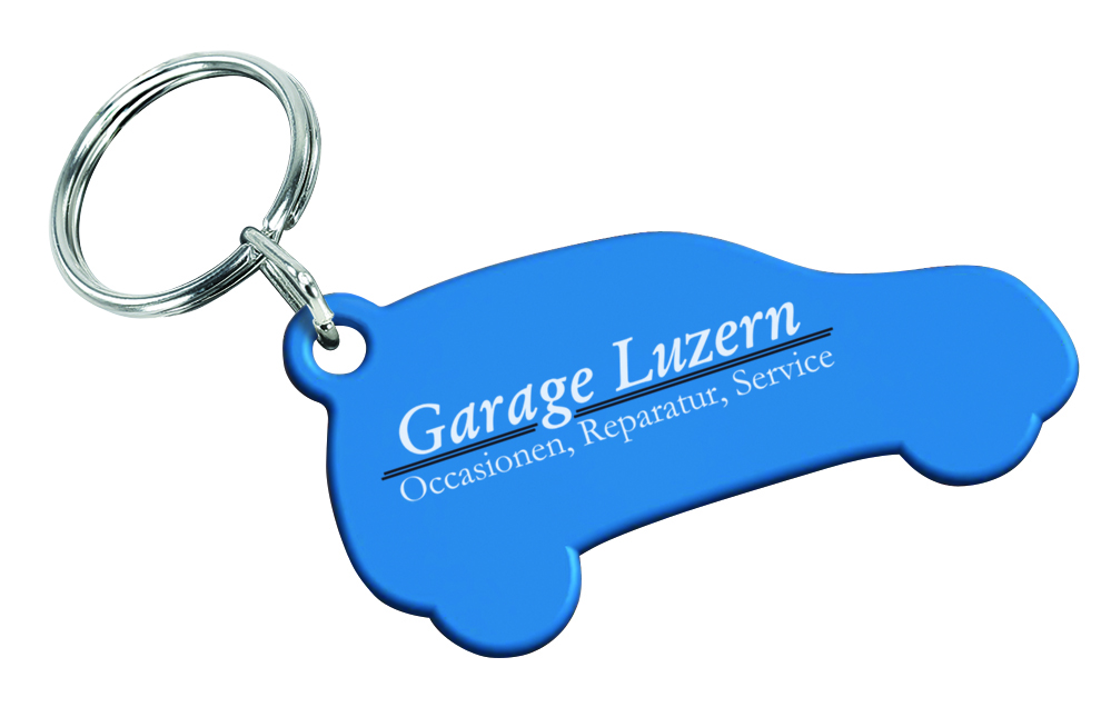 Schlüsselanhänger "Auto" mit Schlüsselring. Farbkombinationen möglich. Druckkosten pro Position
