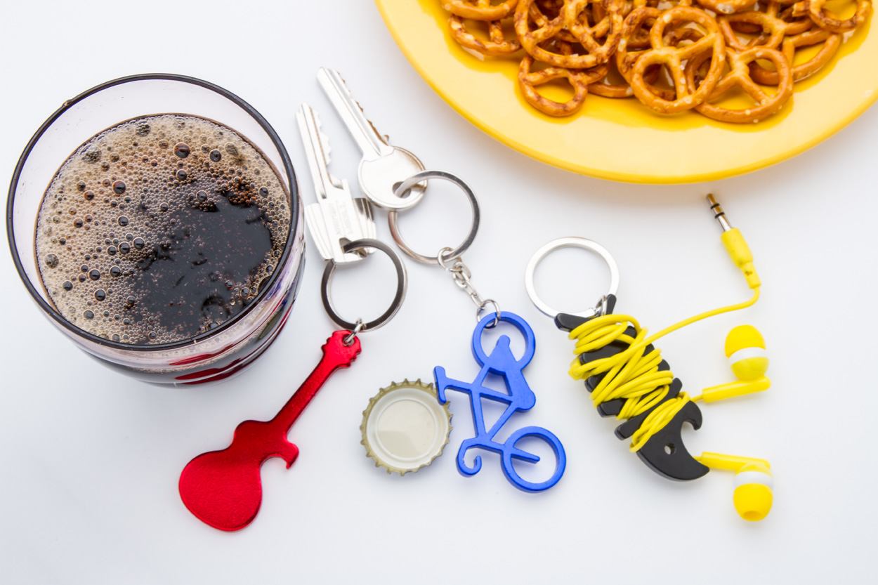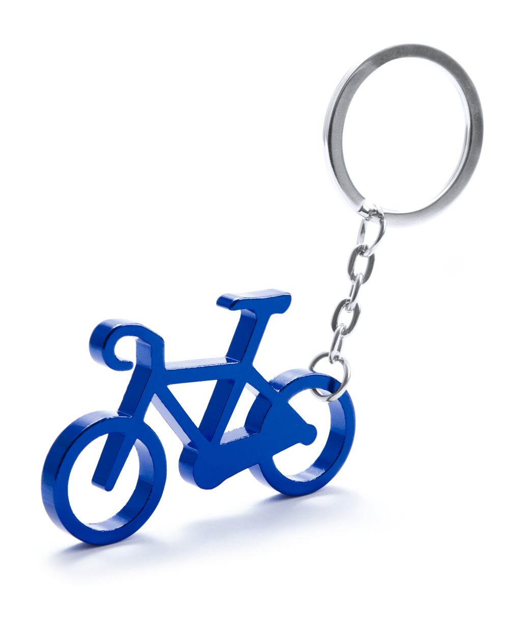 Aluminium-Schlüsselanhänger in Fahrradform mit Flaschenöffnerfunktion.