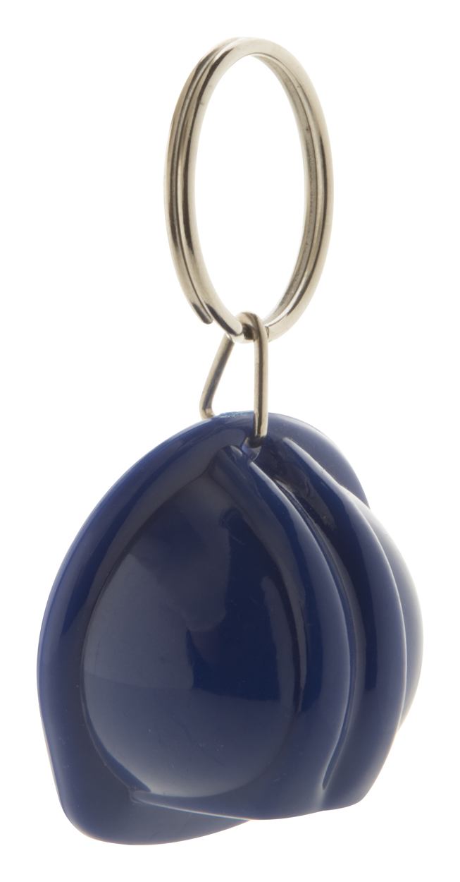 Schlüsselanhänger in Form eines Sicherheitshelmes aus Kunststoff.