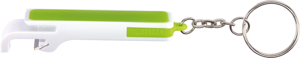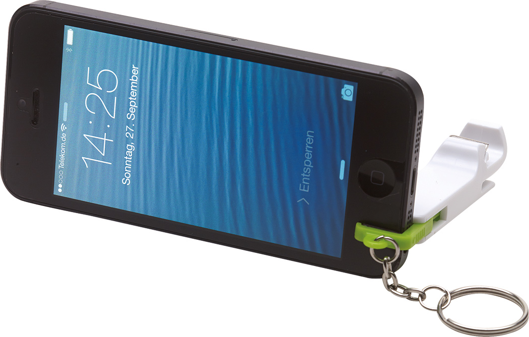 Schlüsselanhänger DOUBLE OPEN: mit ausziehbarem Halter für ein Smartphone, integriertem Flaschenöffner und Schlüsselring