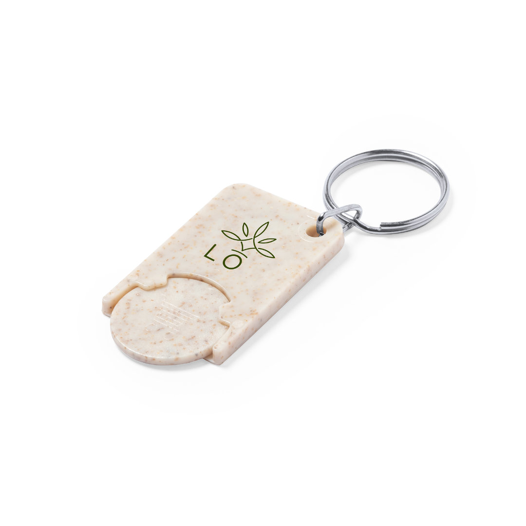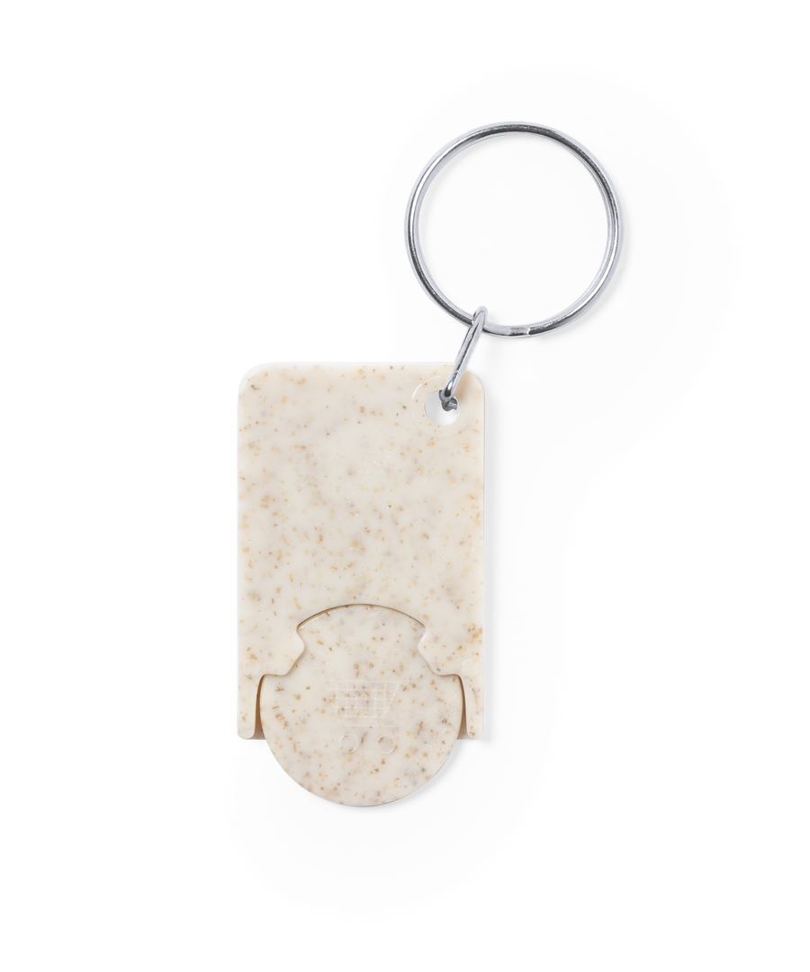 Nature Linie Münz-Schlüsselanhänger aus Weizenstroh, mit abnehmbarer Münze und verchromtem Metallring. Weizenstroh fördert die Verwendung von natürlichen Rohstoffen und reduziert den Schadstoffausstoß.