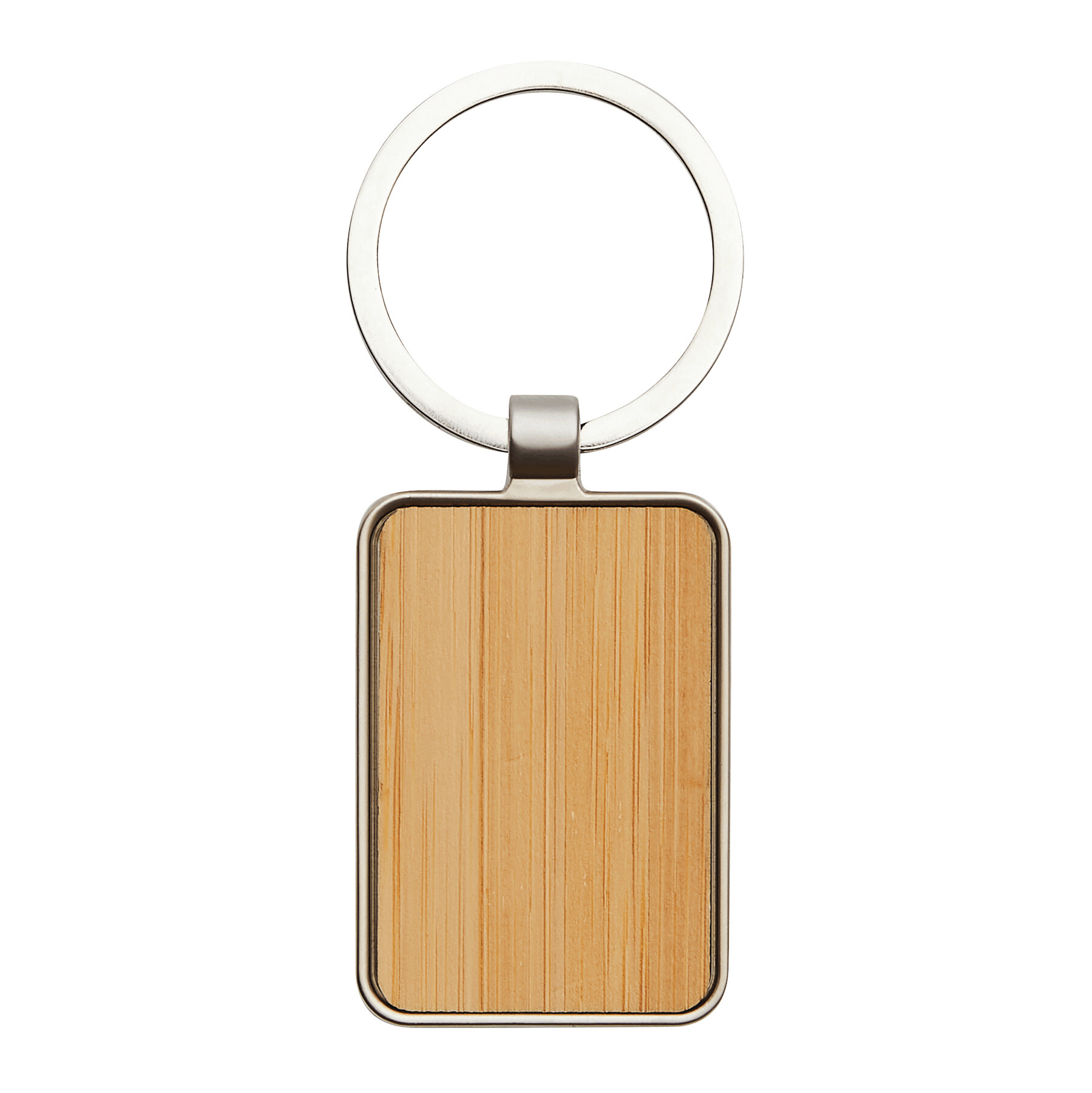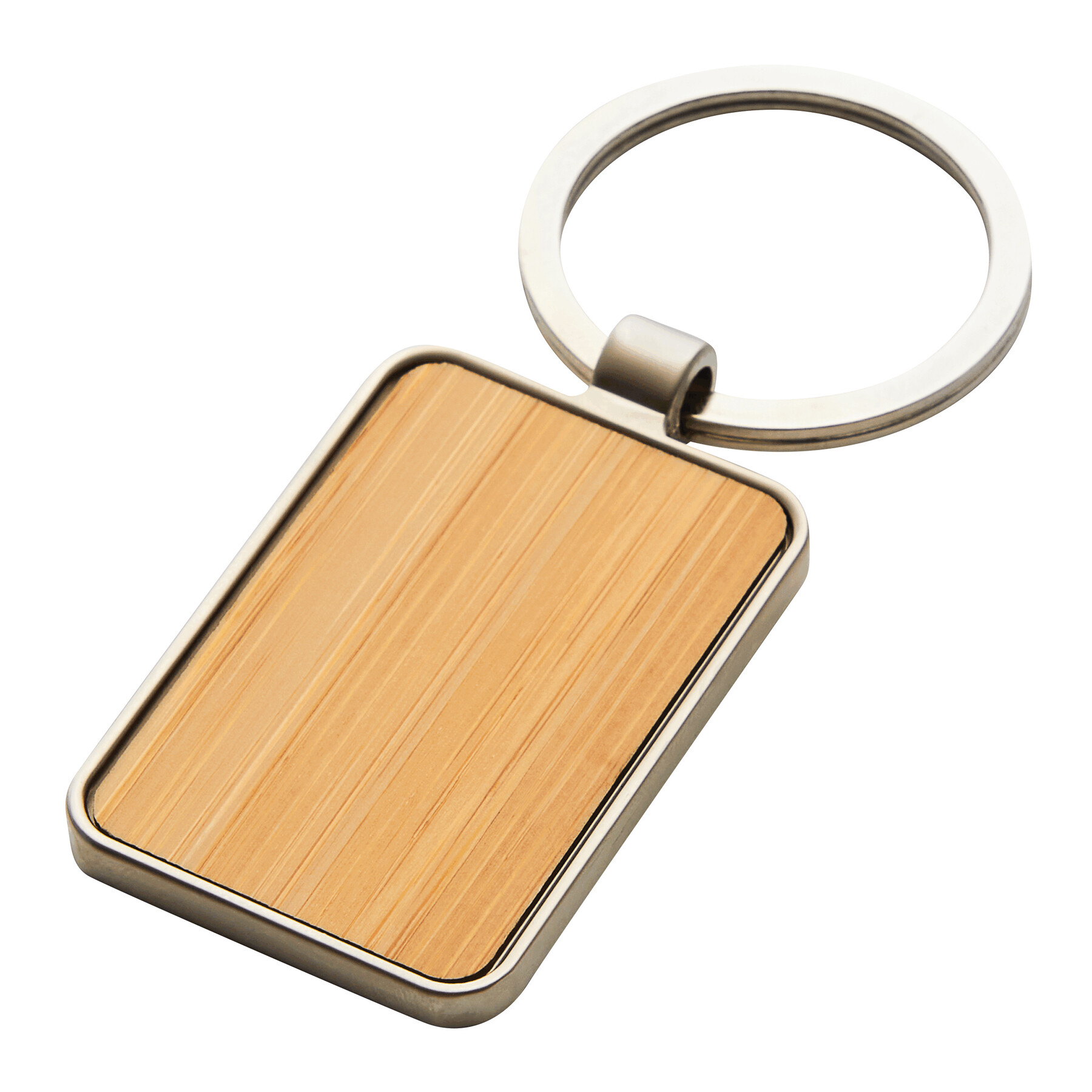 Schlüsselanhänger FIELD: Metall-Rechteck mit Bambus-Einsatz, mit Schlüsselring