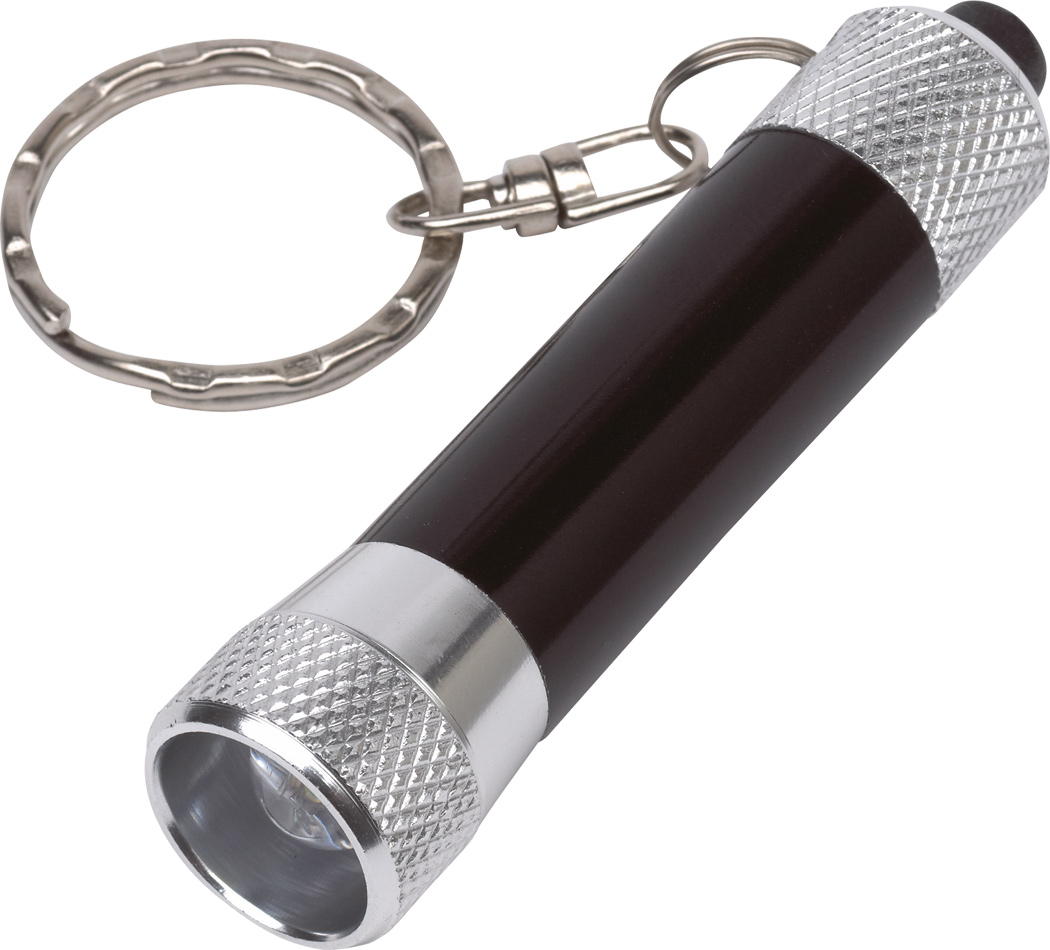 Schlüsselanhänger FLARE: lichtstarke LED-Taschenlampe, gummierter An- und Ausschalter, mit Schlüsselring, in Box