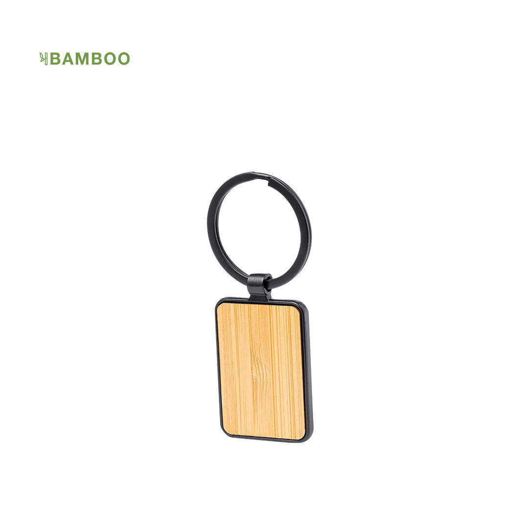 Schlüsselanhänger aus Bambus und Metall rechteckig