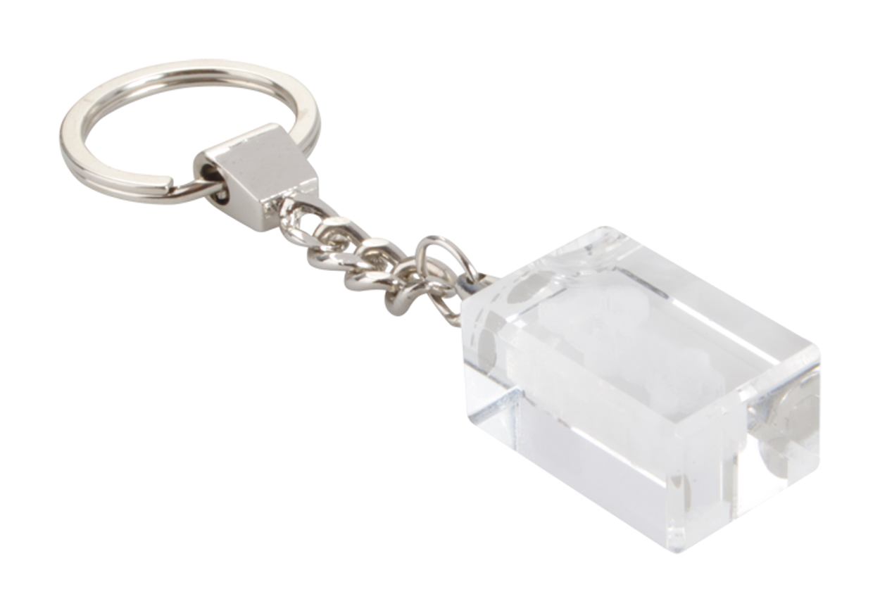 Glasquader mit Schlüsselring. Einzeln in blauer Geschenkbox.