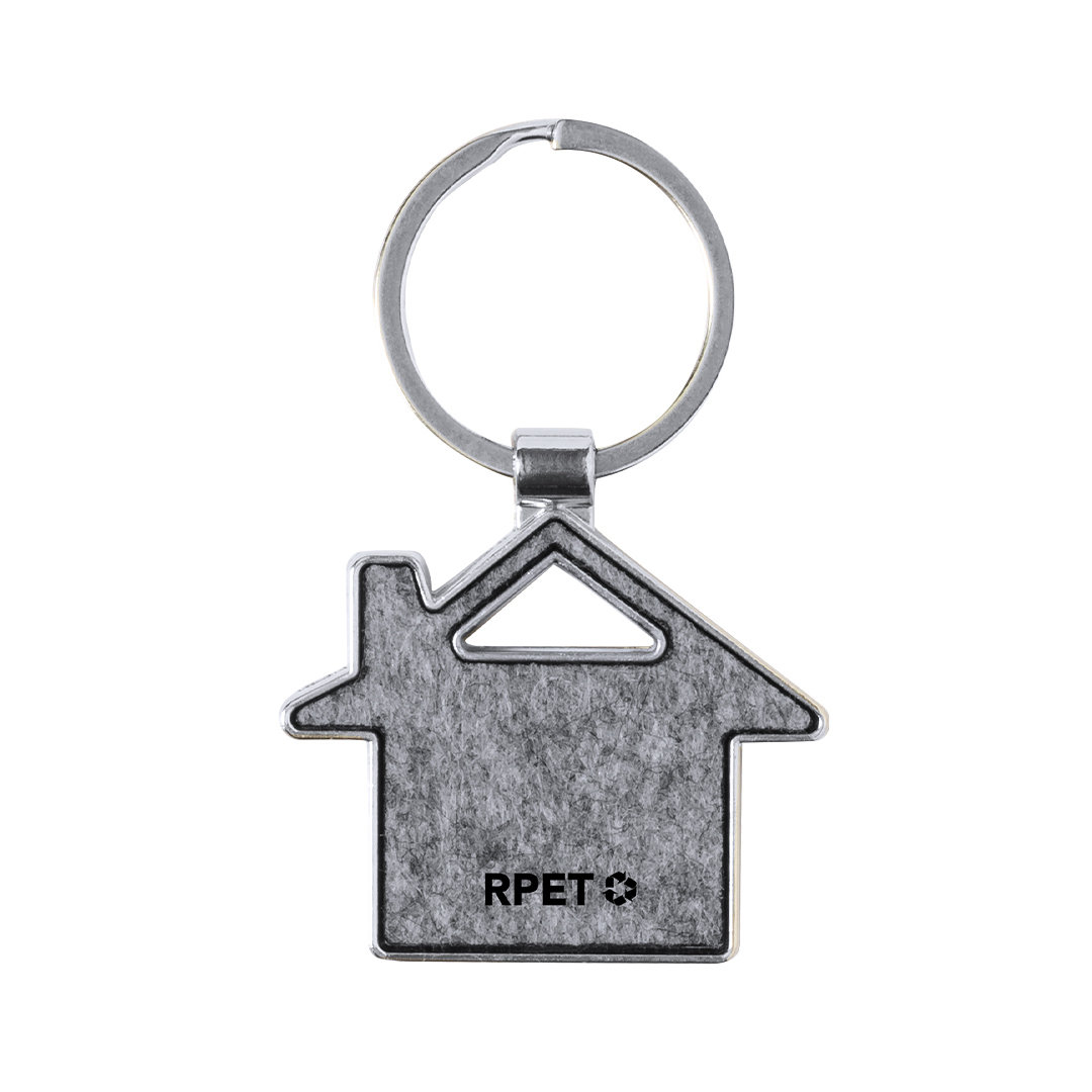 Schlüsselanhänger aus einer Kombination von Metallbasis und RPET-Filzoberflächen. Erhältlich in runder Ausführung, in rechteckiger Ausführung mit abgerundeten Kanten sowie in Haus- und Autoform. Mit großer Beschriftungsfläche und RPET-Logo auf der Vorderseite. Präsentiert in einer individuellen Tasche aus Recyclingpapier. RPET-Filz ist das Ergebnis der Kombination des Recycling-Prozesses von Kunststoffen mit der jahrtausendealten Technik der Filzherstellung. Das Ergebnis ist ein Öko-Trend-Material, das nicht nur aus recyceltem Material besteht, sondern auch recycelbar ist.