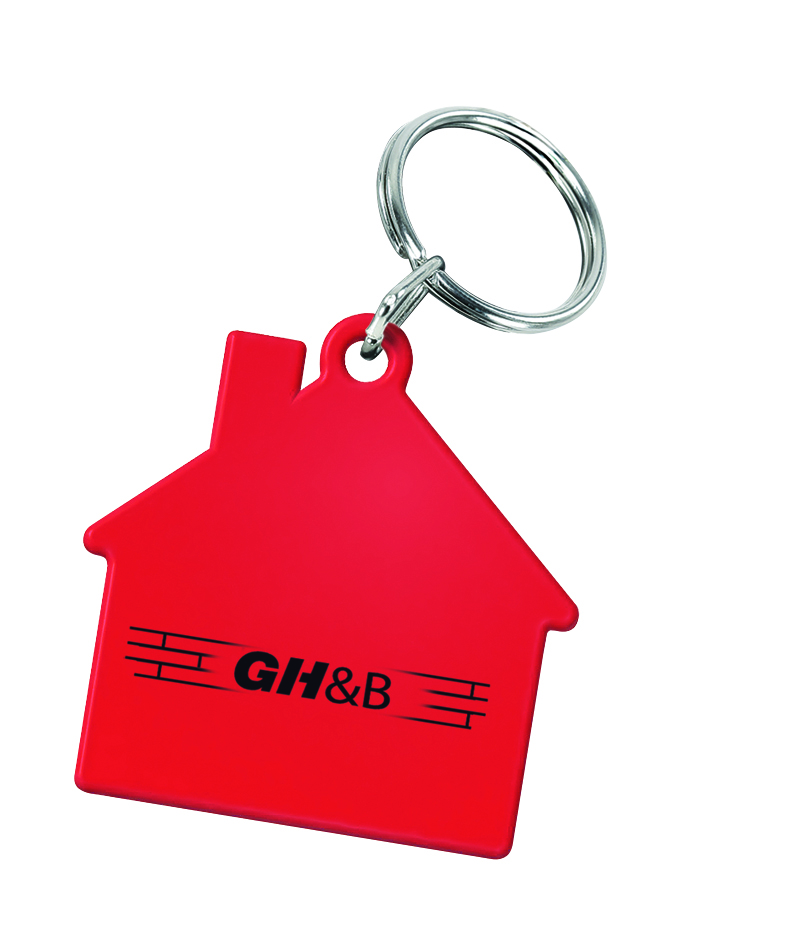Schlüsselanhänger "Haus" mit Schlüsselring. Farbkombinationen möglich. Druckkosten pro Position