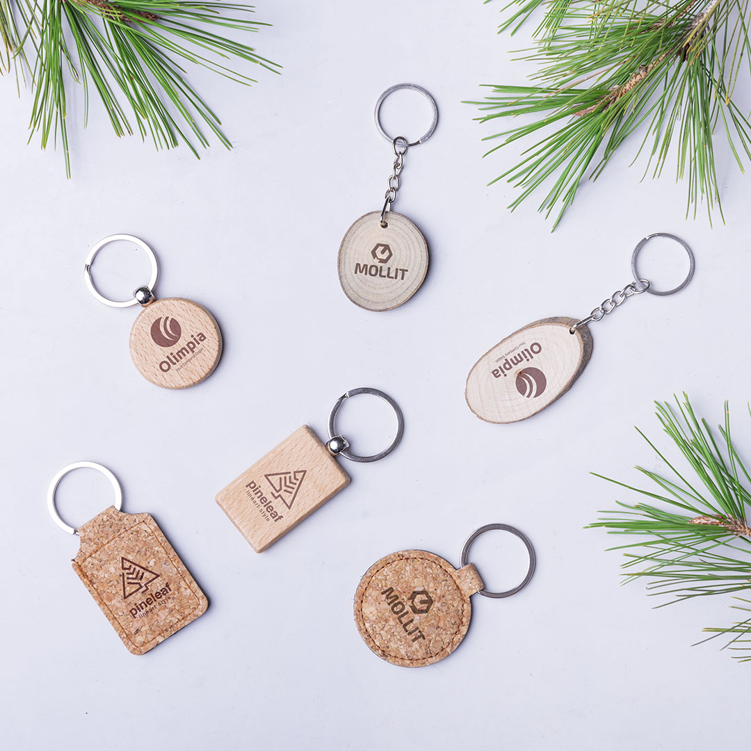 Eleganter Schlüsselanhänger der Linie Nature aus Naturkork. Mit großer Druckfläche. Erhältlich in quadratisch und rund.
