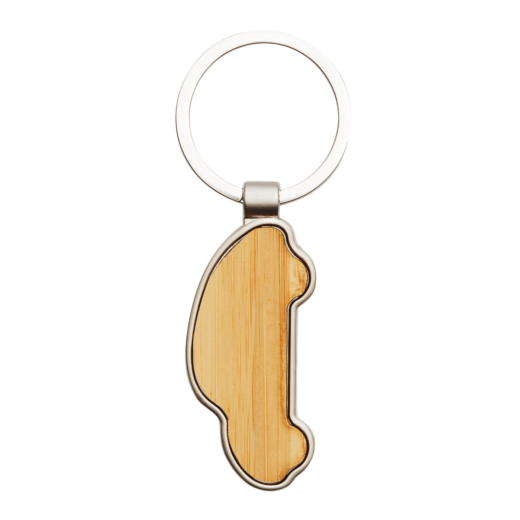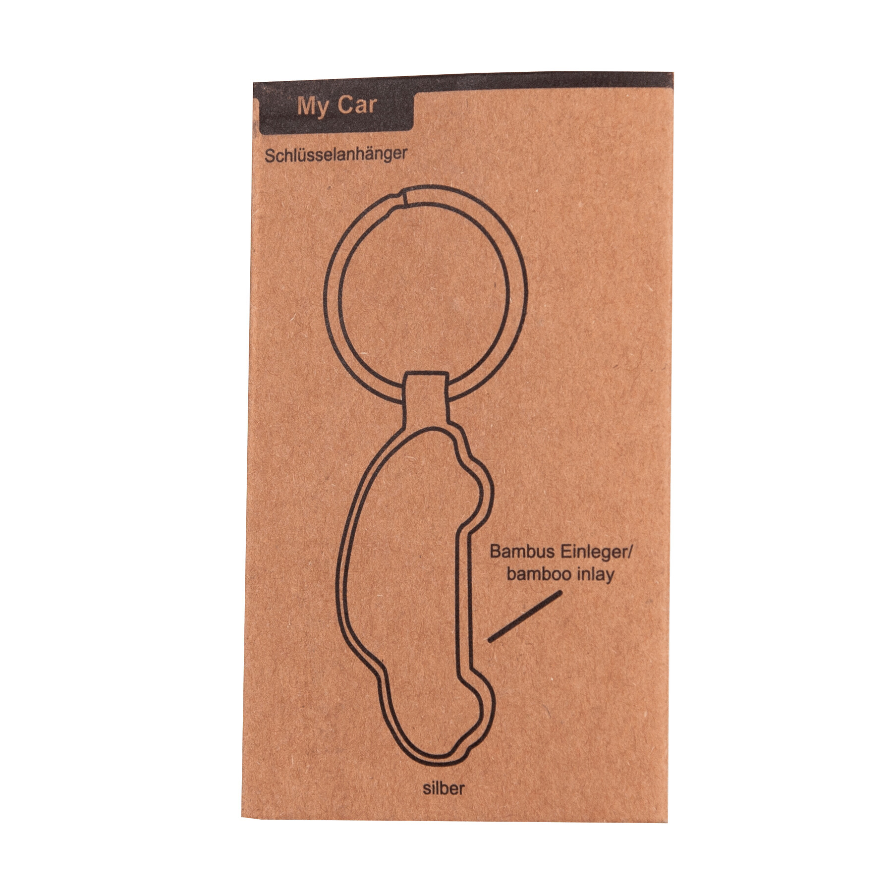 Schlüsselanhänger MY CAR: Metall-Autoform mit Bambus-Einsatz, mit Schlüsselring
