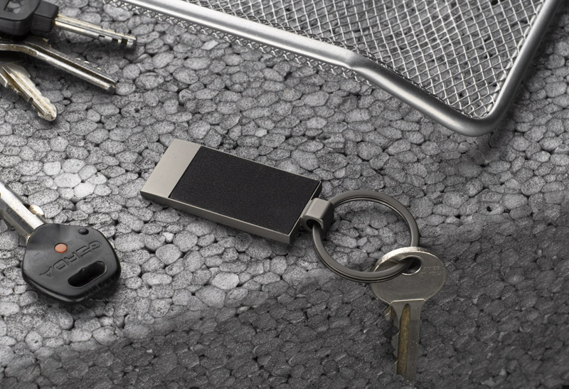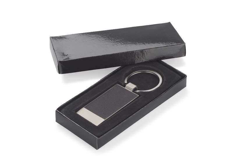 Schlüsselanhänger aus Metall mit weichem Material überzogen. Verpackt in einem Karton..