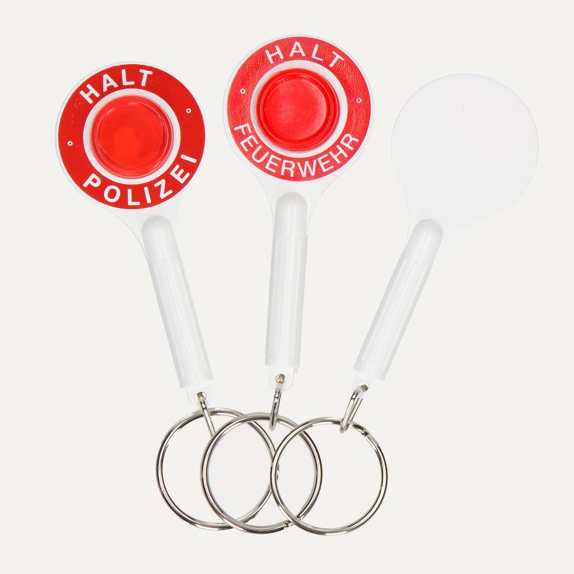 Aufmerksamkeit garantiert. Als Polizeikelle, Feuerwehrkelle oder Bundespolizei-Version erhältlich. Mit Schlüsselring.