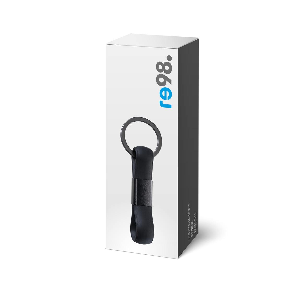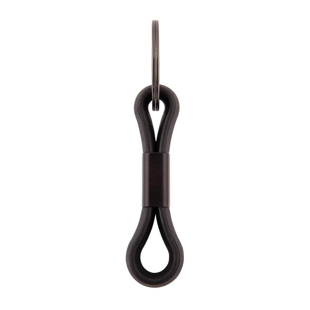 Ein Hingucker am Schlüsselbund mit angenehmer Haptik. Die Silikonschlaufe in Schwarz hat eine schwarze Spange aus Metall. Auf dieser können Sie Ihr Logo perfekt mit einer edlen Lasergravur in Szene setzen. Ab 3.000 Stück in Sonderfarbe erhältlich.