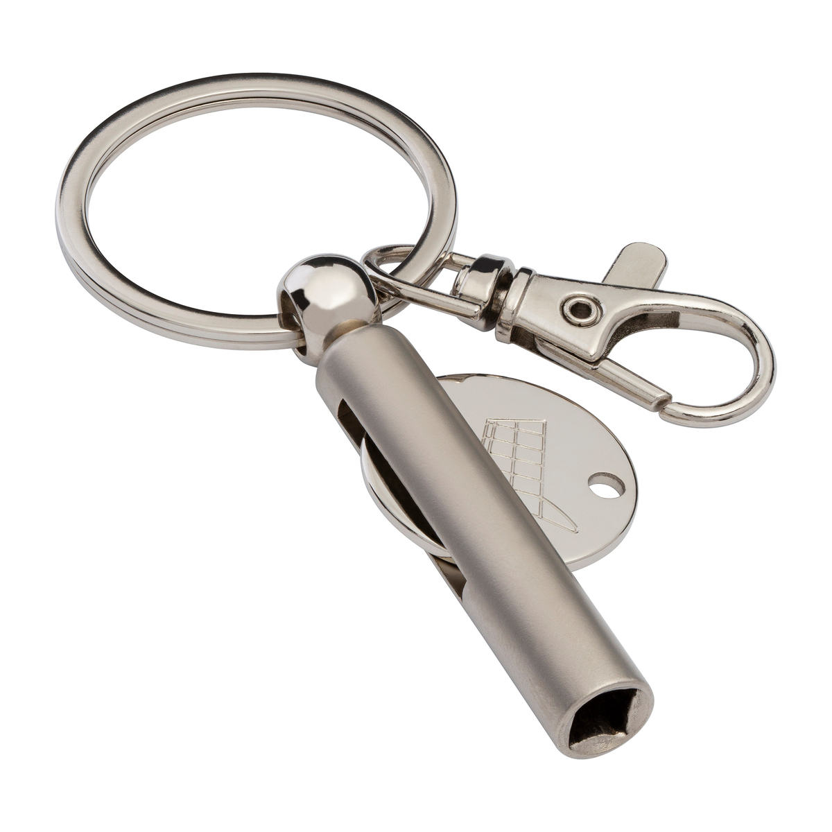 Zwei nützliche Funktionen an Ihrem Schlüsselbund: ein Heizkörperschlüssel und ein Caddy-Chip! Der glänzende Caddy-Chip ist an einem massiven Karabiner befestigt, der durch einen zusätzlichen Schlüsselring aus mattem Metall ergänzt wird. Dieser elegant gestaltete Anhänger sieht aus wie ein edler Schmuckanhänger und hat auch eine technische Funktion. Für die optimale Nutzung des Heizkörperschlüssels verwenden Sie einfach den Caddy-Chip oder eine Münze und stecken diese in den dafür vorgesehenen Schlitz. Stecken Sie die Münze ein, um das Drehen des Heizkörperschlüssels beim Entlüften des Heizkörpers zu erleichtern. Der Chip sowie der längliche Schlüsselanhänger können mit einer Lasergravur als Werbeanbringung versehen werden.