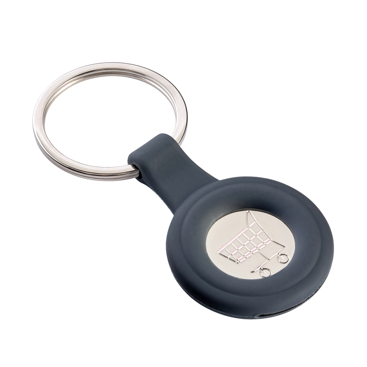 Der blaue Schlüsselanhänger mit rundem Silikonrand zeichnet sich einerseits durch seine angenehme Haptik und außerdem durch den praktischen Caddy Chip aus. Der Einkaufswagenchip aus Metall kann aus dem Silikonring rausgedrückt werden und nach Gebrauch wieder am unteren Rand des Silikonrings eingeschoben werden. Mit einem stabilen, metallenen Split-Ring lassen sich Ihre Schlüssel in bewährter Manier aufnehmen. Veredelbar ist der Einkaufswagenchip mit einer edlen Lasergravur. So bleibt Ihr Logo am Schlüsselbund immer präsent.