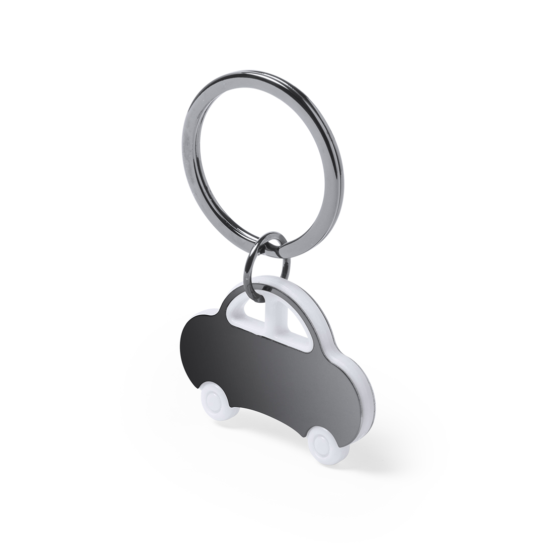 Schlüsselanhänger in Auto-Form aus Edelstahl. Mit zweifarbigem Design in einer Vielzahl von Farben.