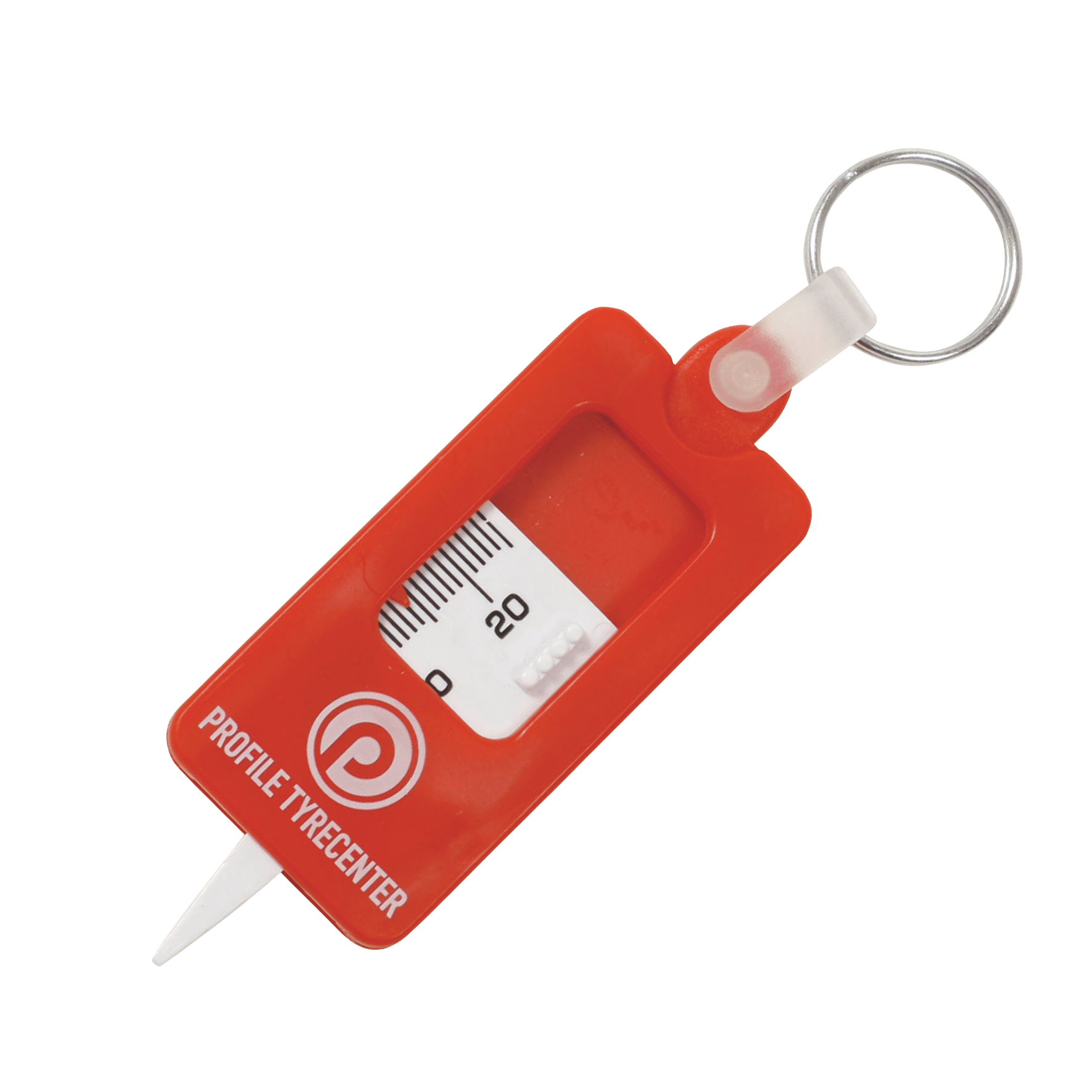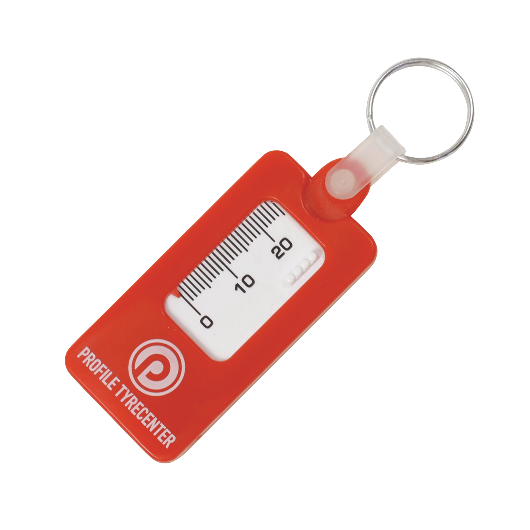 Schlüsselanhänger Reifenprofilprüfer, 68 x 30 x 6 mm, Kunststoff.
