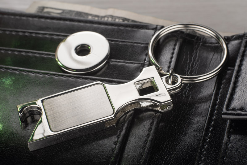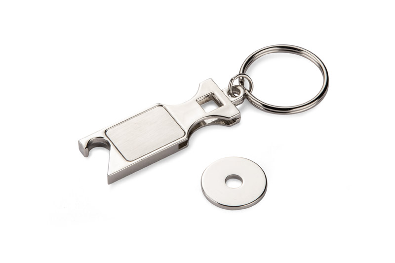 Der SPRITI-Metall-Schlüsselanhänger ist ein elegantes und langlebiges Werbegeschenk, das die Funktion eines Flaschenöffners und einer Einkaufswagen-Token vereint.