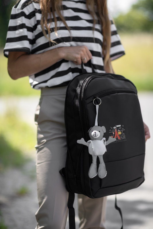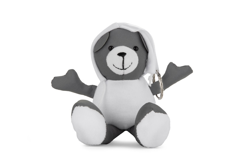 TED ist ein sympathischer Werbe-Schlüsselanhänger in Form eines Teddybären im Pullover. Der Kopf, die Arme und die Beine sind aus einem glänzenden Material gefertigt, das das Licht reflektiert und die Blicke auf sich zieht. Ein weißes Polyesterband ist an den Teddybären genäht und endet in einem Metallring, mit dem er an einem Rucksack, einer Tasche oder einem Schlüssel befestigt werden kann. Ein freundliches und funktionelles Accessoire - ideal für saisonale Werbekampagnen.
