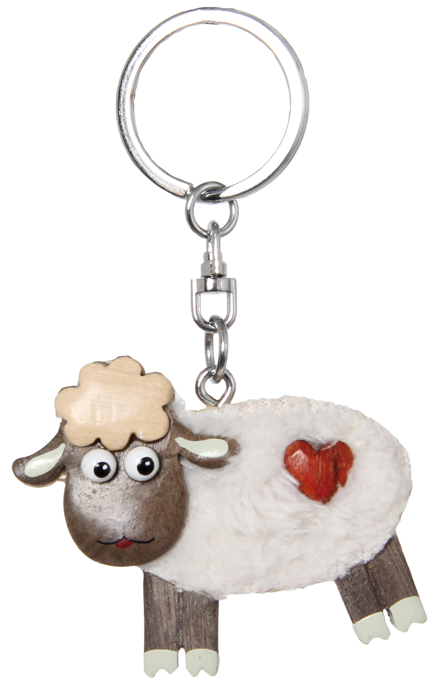 Lustiger Schlüsselanhänger aus Holz. Mit den runden Glupschaugen und dem weichen Plüschfell eine Zierde für jeden Schlüsselbund. Verschiedene Tierdesigns sortiert.