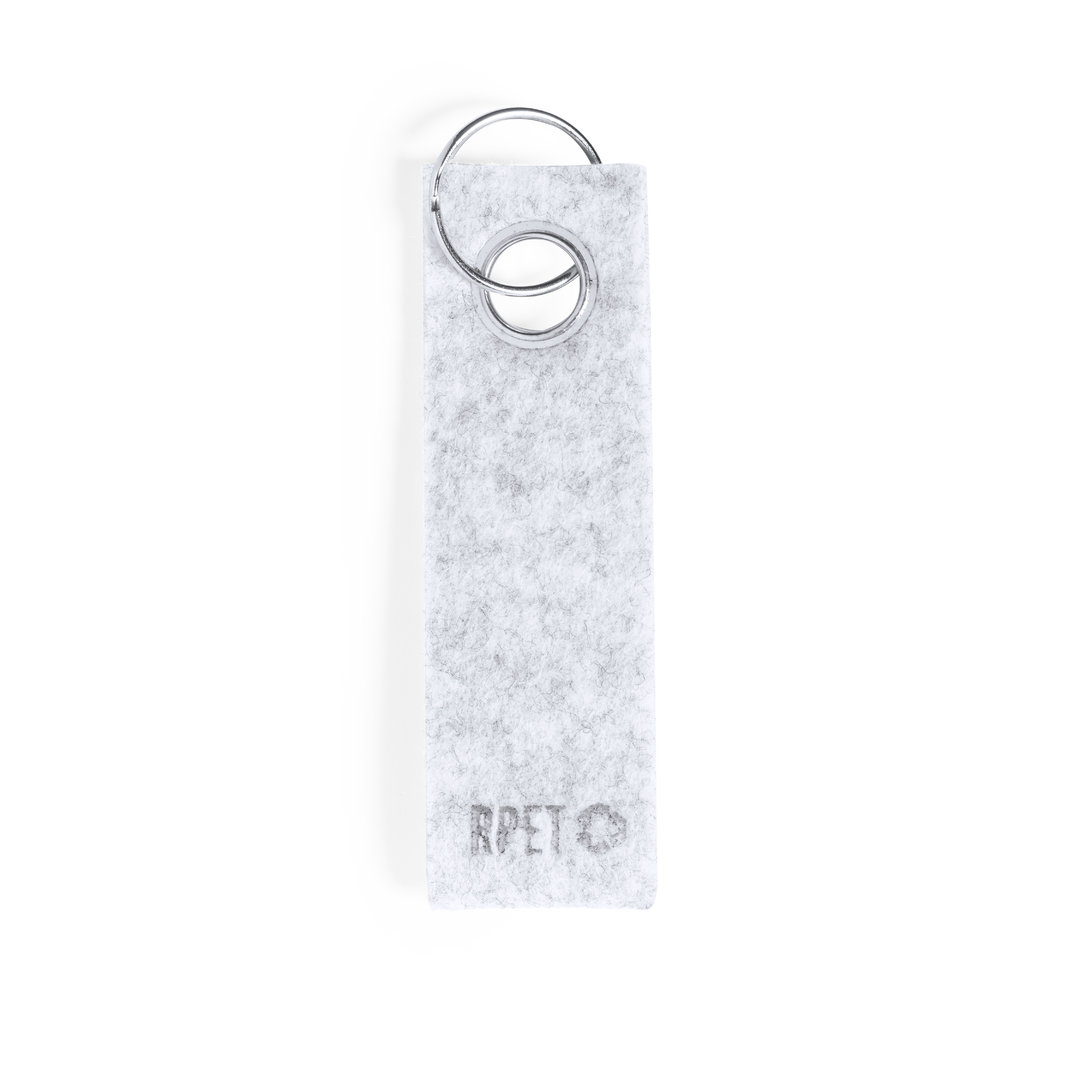 Eleganter Schlüsselanhänger mit Filz-RPET-Band und verchromter Metallöse. Mit dem unverwechselbaren Felt RPET auf dem Band und dem verchromten Metallring. Felt RPET ist das Ergebnis der Kombination der Recyclingprozesse von Kunststoffen mit der jahrtausendealten Technik der Filzherstellung, was zu einem Öko-Trend-Material führt, das nicht nur recycelten Ursprungs ist, sondern auch wiederverwertet werden kann.