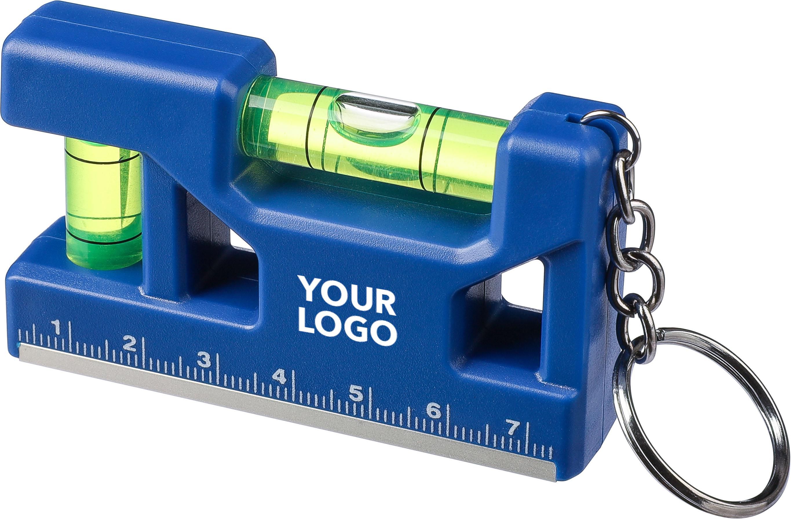 Schlüsselanhänger aus recyceltem ABS mit Magnet-Wasserwaage und Größenangabe auf der Vorderseite. Dank des Magnetstreifens an der Unterseite kann er an Metalloberflächen befestigt werden. Er verfügt über einen Schlüsselring und ein recyceltes ABS-Logo auf der Rückseite. Er ist einzeln in einem braunen Karton verpackt.