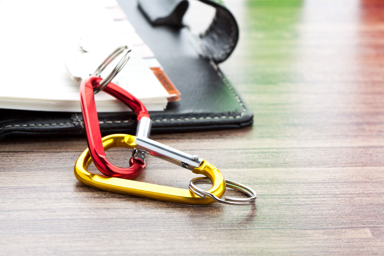 Aluminium-Karabiner mit Metall-Schlüsselring.