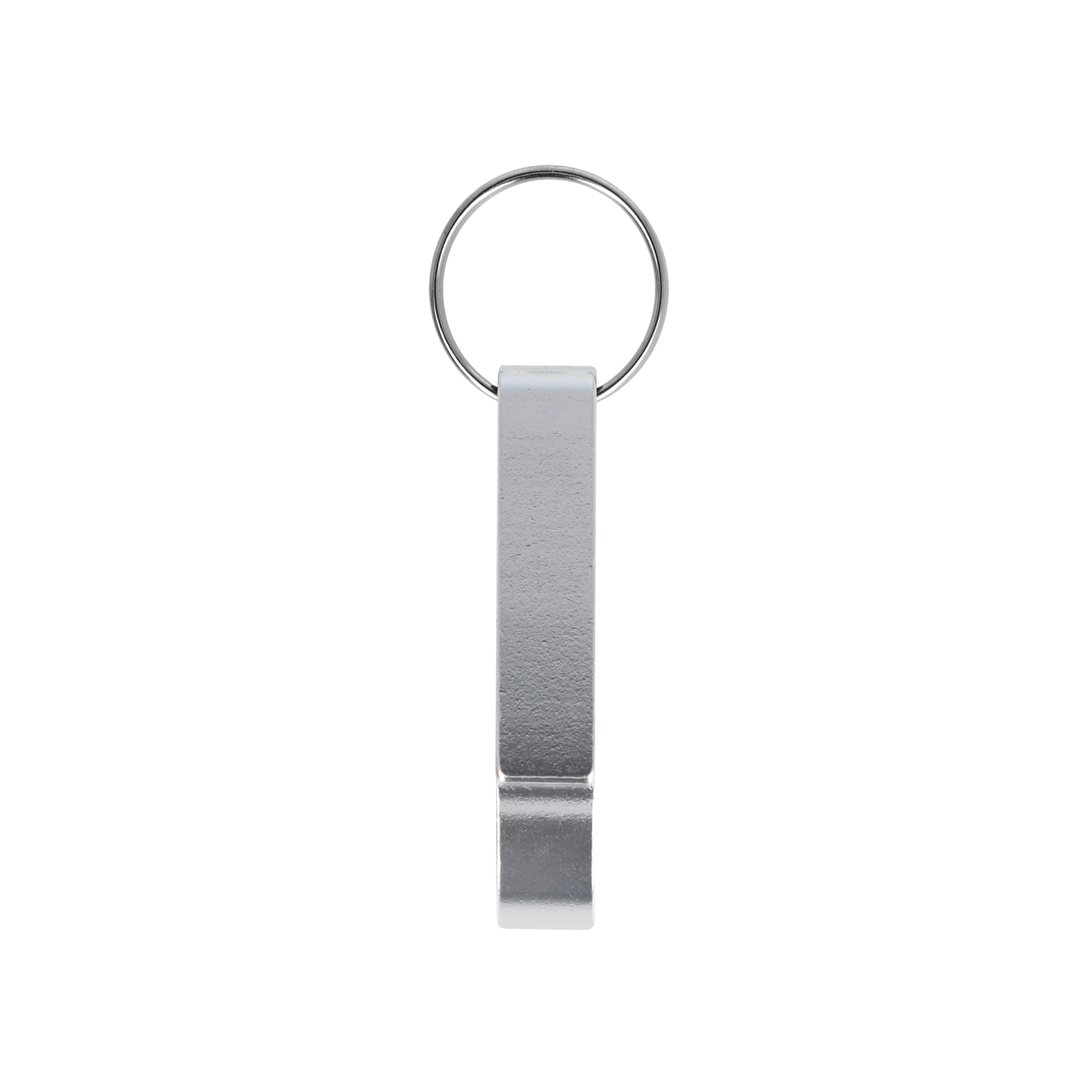 Aluminium-Schlüsselanhänger mit kombiniertem Flaschen- und Dosenöffner. Leicht, langlebig und ideal für den täglichen Gebrauch.