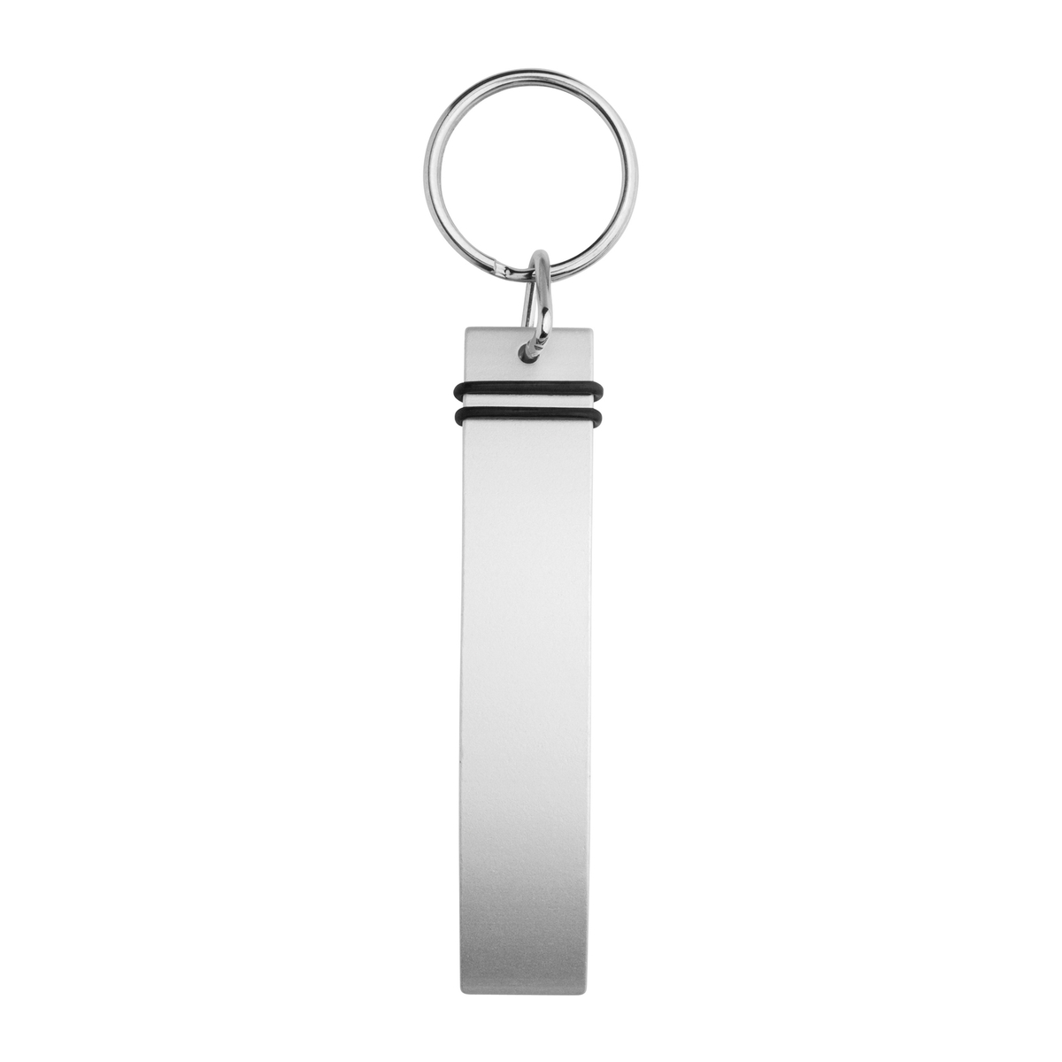 Geschwungener Schlüsselanhänger aus hochwertigem Aluminium als Flaschenöffner. Auf der gut sichtbaren Veredelungsfläche wirkt eine Lasergravur besonders hochwertig. Alternativ kann auch ein einfarbiger Tampondruck aufgetragen werden.
