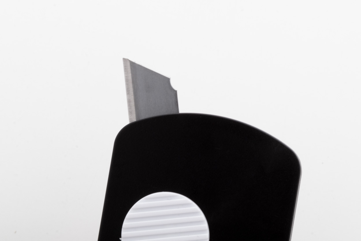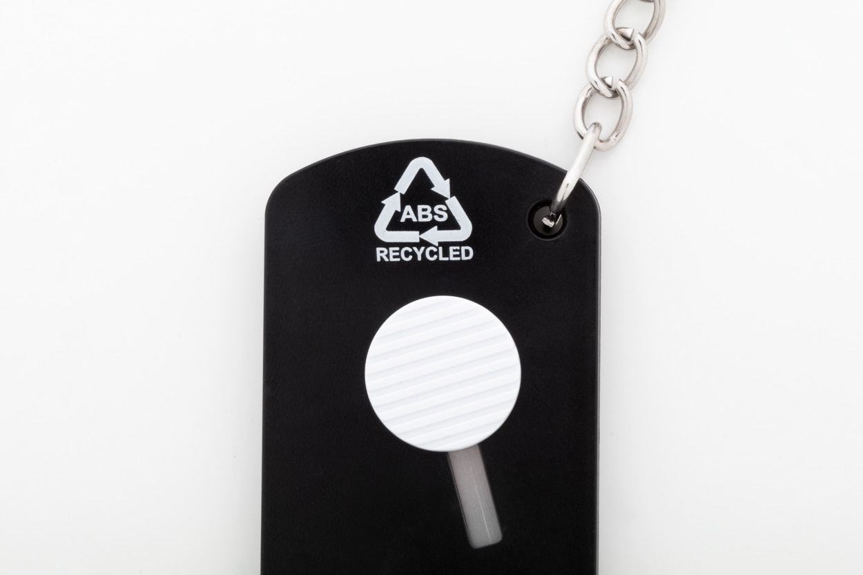 Papiermesser aus recyceltem ABS Kunststoff und Edstahl mit selbseinziehender Klinge und Metallschlüsselring.