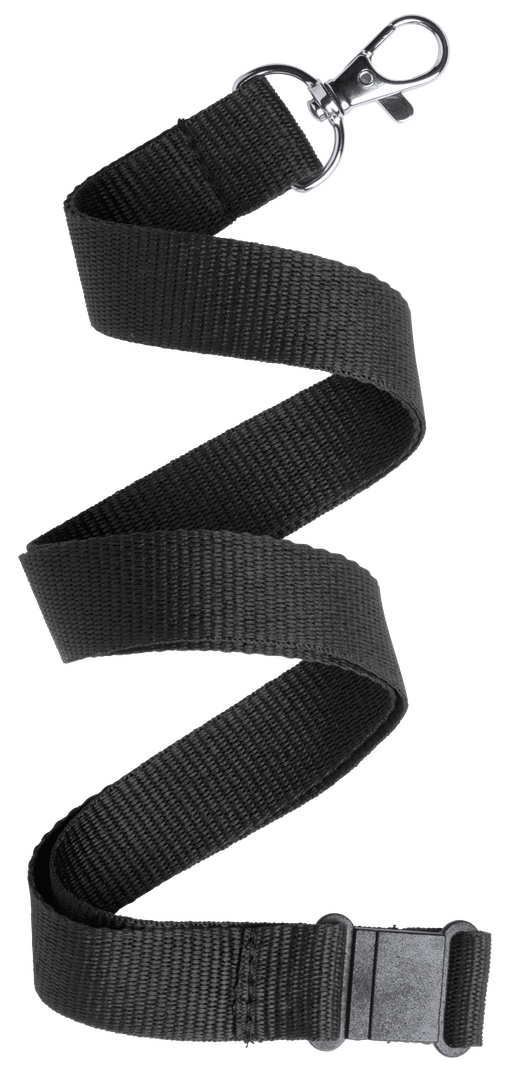 Lanyard aus robustem Polyester, mit Sicherheitsverschluss im Nacken und Metallkarabiner. Erhältlich in einer Vielzahl von lebendigen Farben.